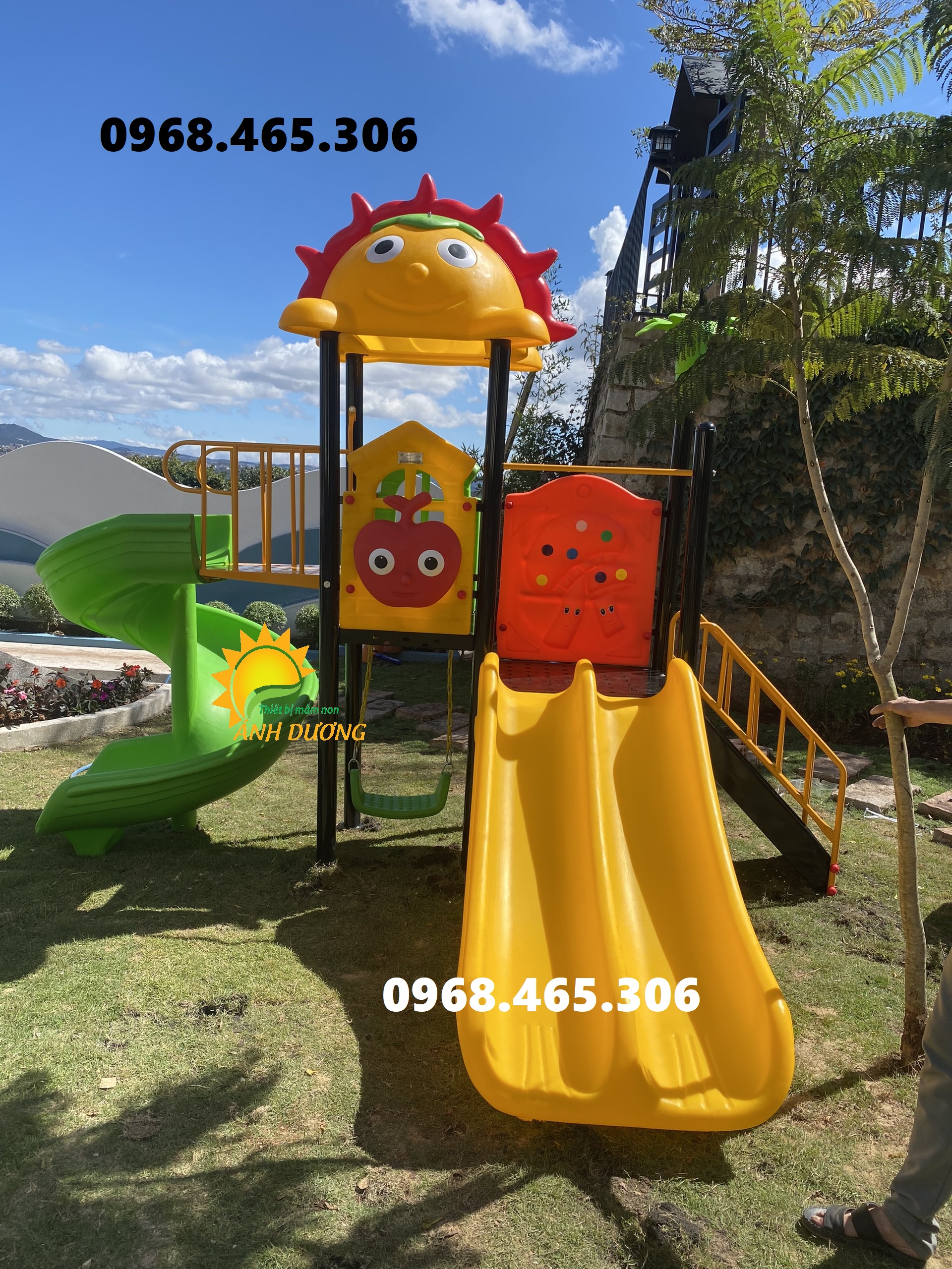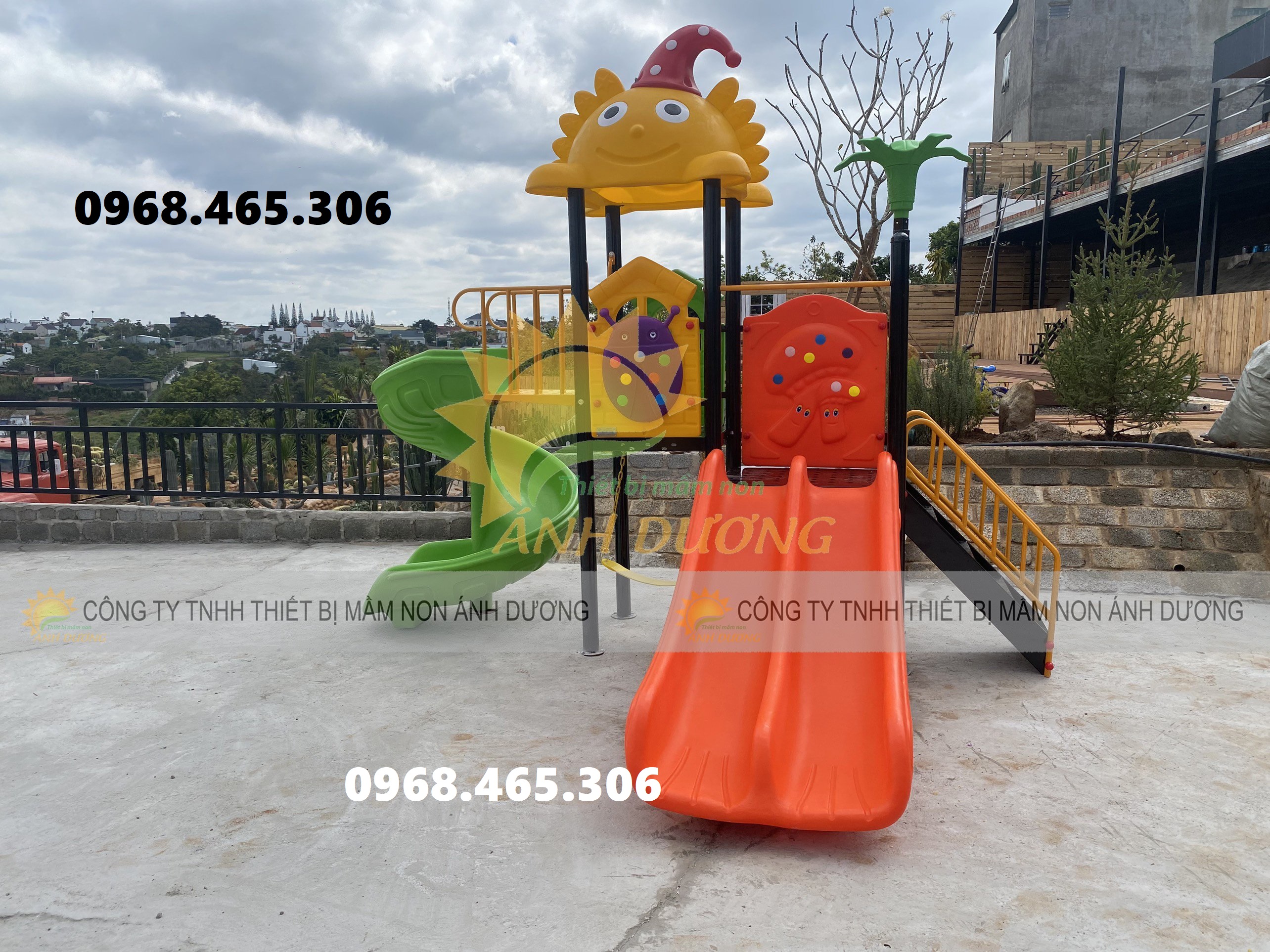 Cầu trượt gồm các chi tiết máng trượt, phù điêu trang trí, ghế xích đu được làm bằng nhựa LLDPE cao cấp hoặc nhựa composite chuyên sử dụng ngoài trời. Cầu trượt có các thành phần nhựa chịu được nhiệt độ cao 95 độ C, chống sốc, chống trượt, chống nứt, không phai màu. Điều này giúp trẻ tận hưởng cảm giác thú vị và kích thích sự mạo hiểm nhẹ nhàng, đồng thời rèn luyện sự cân bằng và khéo léo của trẻ.Cầu trượt liên hoàn cho trường mầm non có thể được làm từ các vật liệu an toàn như nhựa cao cấp, đảm bảo tính bền và an toàn cho trẻ khi chơi.