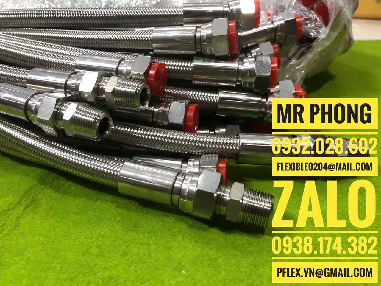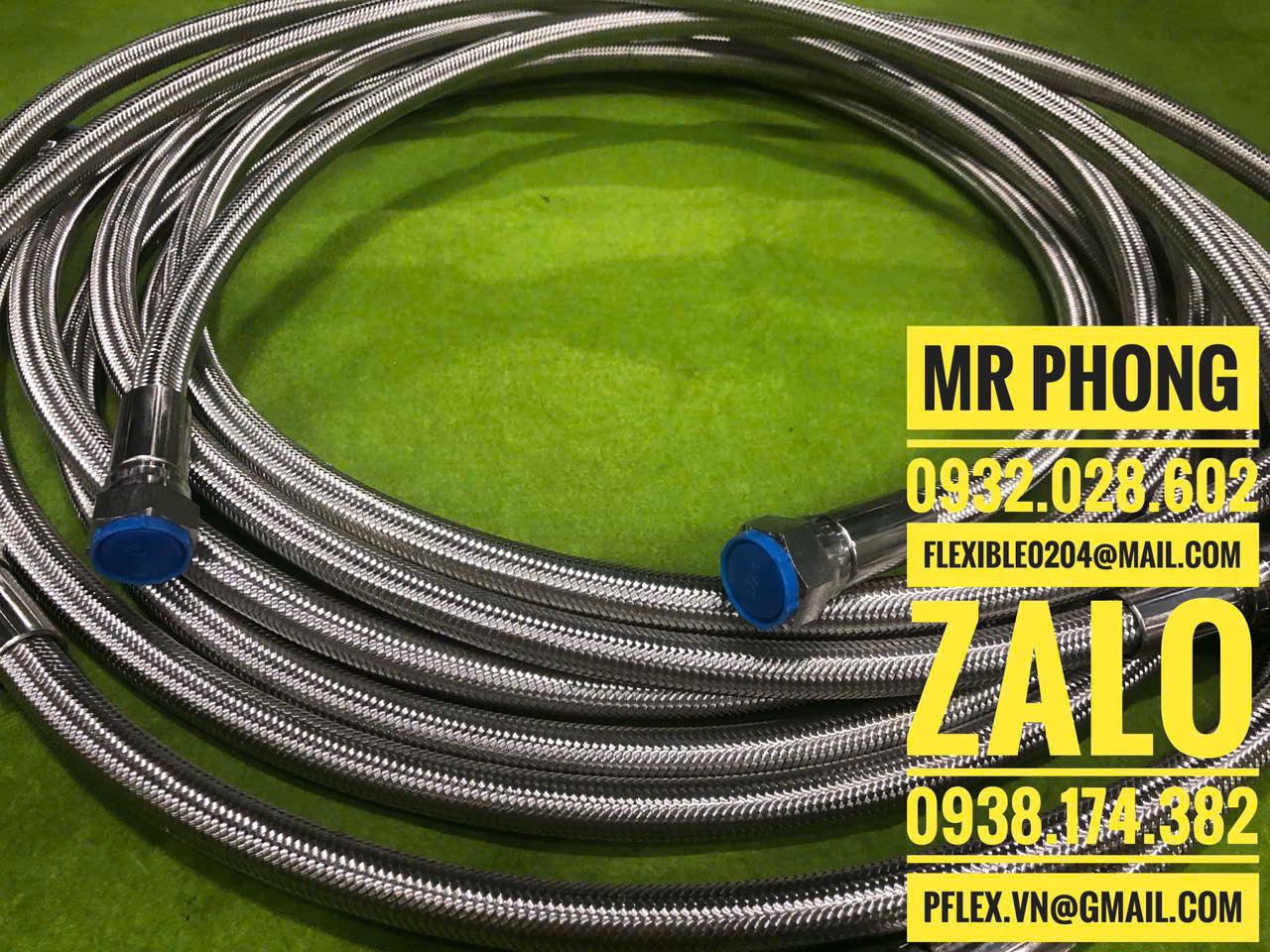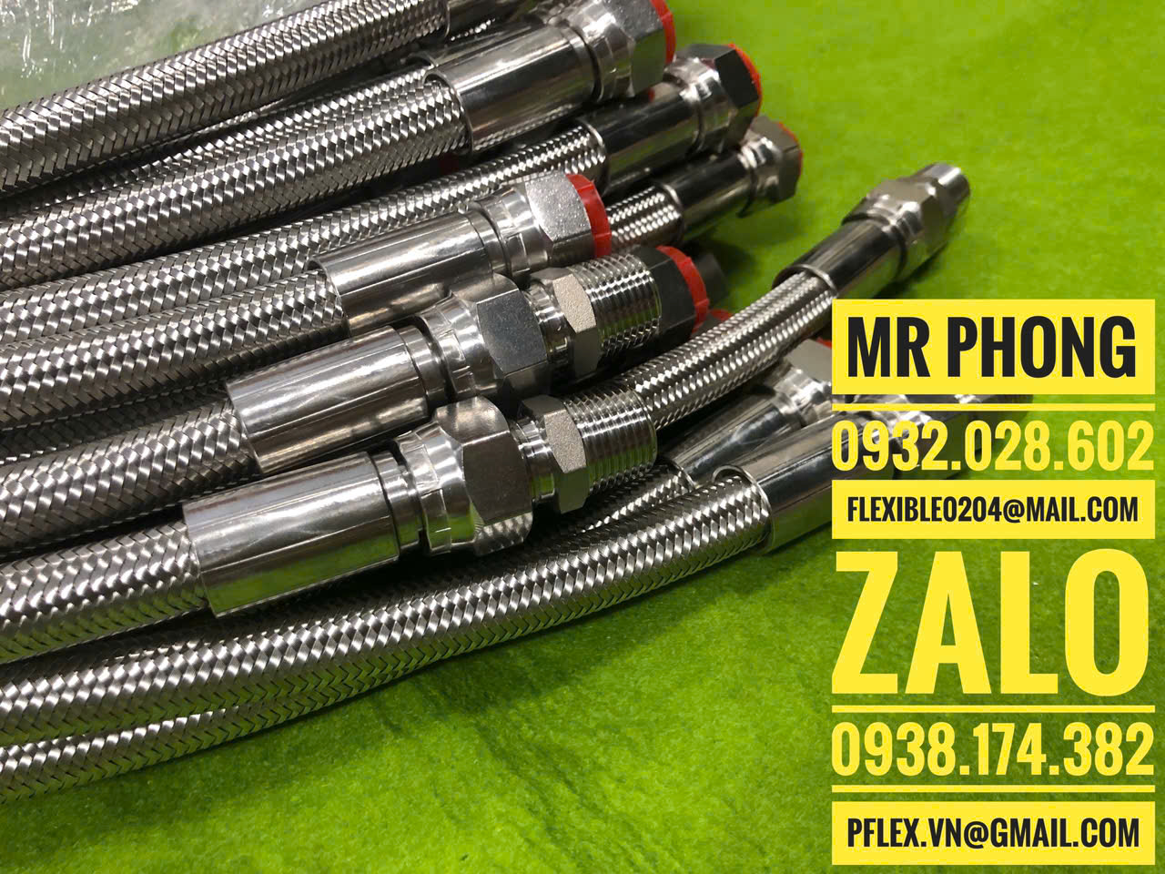 Thành phần và công dụng của ống teflon bọc lưới : Lớp lót PTFE (Teflon): Ống bên trong này được làm từ nhựa PTFE nguyên chất, tạo ra bề mặt chống dính với độ ma sát cực thấp và khả năng kháng hóa chất rộng. Lớp bện thép không gỉ 304: Lớp ngoài là lưới thép không gỉ 304 đan chéo, gia cố lớp lót PTFE, mang lại Khả năng chịu áp suất cao: Lớp này chứa áp suất từ bên trong ống. Bảo vệ bên ngoài: Lớp bện bảo vệ PTFE khỏi bị mài mòn, xoắn và các hư hỏng bên ngoài khác.