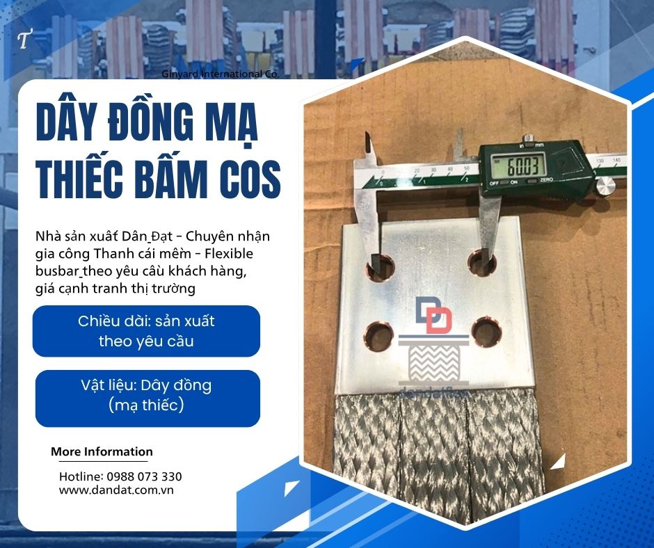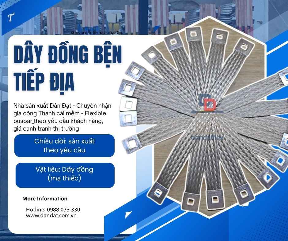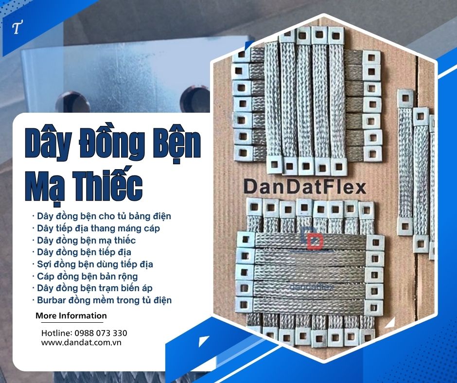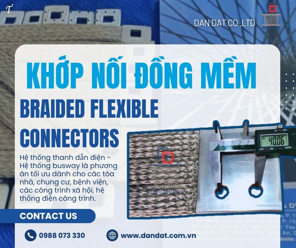 – Khớp đồng mềm, Khớp nối đồng bện mềm, Khớp nối đồng mềm,Khớp nối mềm busway, Thanh nối đồng mềm cho hệ thống điện công trình – Thanh nối đồng mềm, Thanh đồng mềm nối busway và máy phát điện, thanh cái đồng mềm nối máy biến áp – Flexible busbar, Flexible copper busbar, Flexible copper braid, Flexible copper connector, Copper braid, Busbar braid,.. – Dây đồng bện, Dây đồng bện mạ thiếc, Dây đồng bện tiếp địa thang máng cáp, Dây đồng bện tiếp địa tủ điện, Dây đồng bện tiếp địa mặt bích, Cáp đồng bện tiếp địa - Ống ruột gà inox 304, Ống ruột gà luồn dây điện inox 304, Ống ruột gà inox 304 bọc nhựa PVC, Ống ruột gà lõi thép bọc nhựa bọc lưới