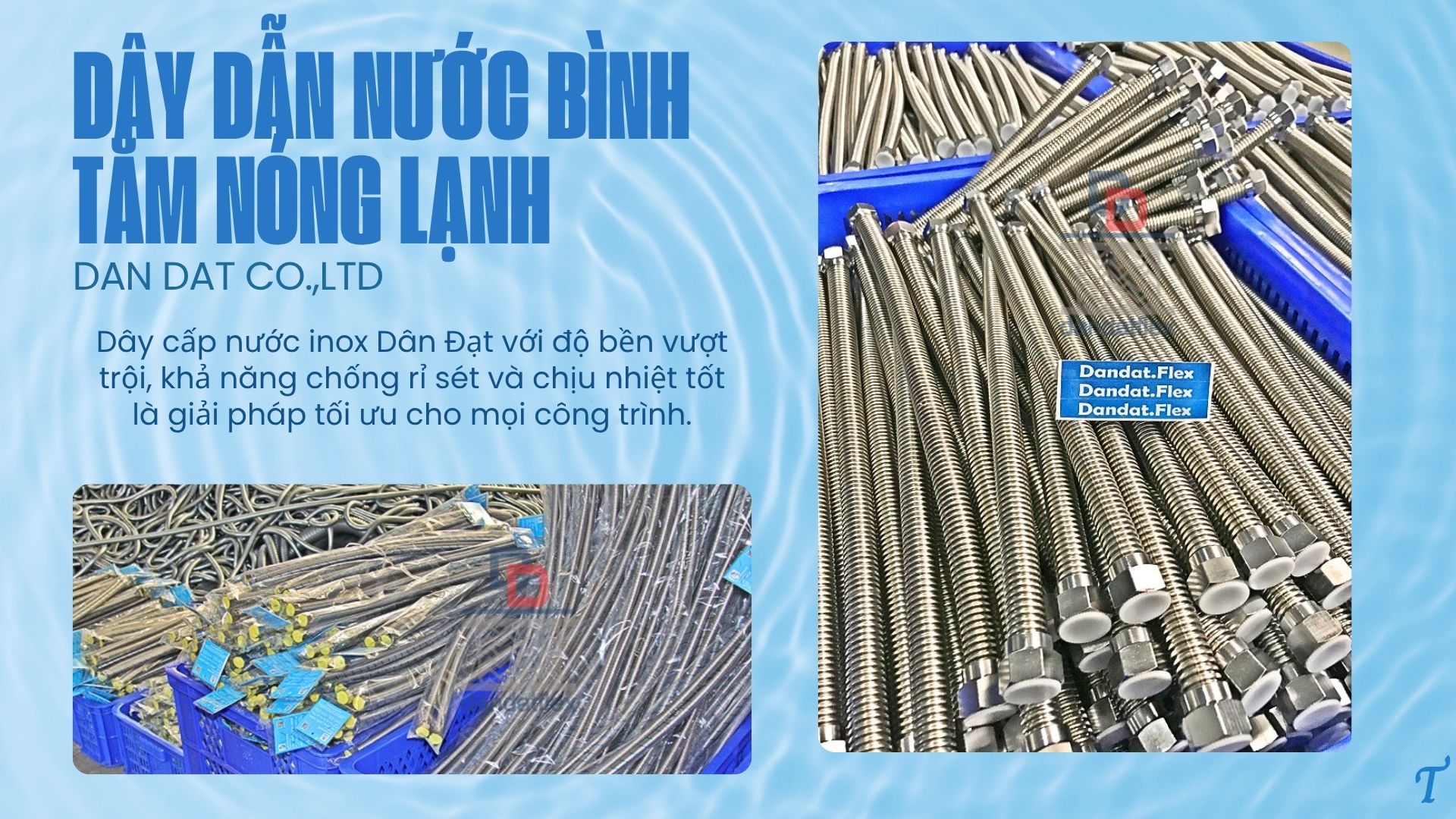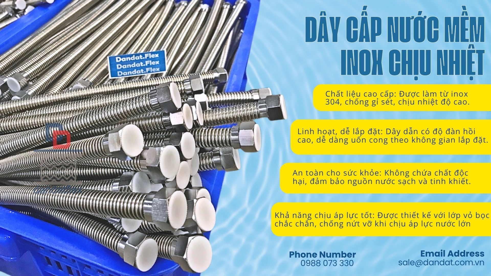 1. Giới Thiệu Về Dây Dẫn Nước Inox Dân Đạt Dây dẫn nước inox (hay còn gọi là dây dẫn nước inox nóng lạnh) là một trong những phụ kiện không thể thiếu trong hệ thống cấp nước gia đình và công trình. Với chất liệu inox cao cấp, dây cấp nước Dân Đạt mang lại độ bền vượt trội, khả năng chịu nhiệt tốt và đảm bảo an toàn cho nguồn nước sử dụng.