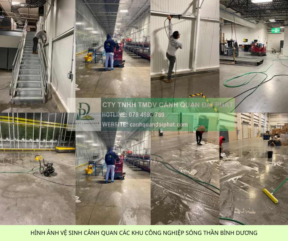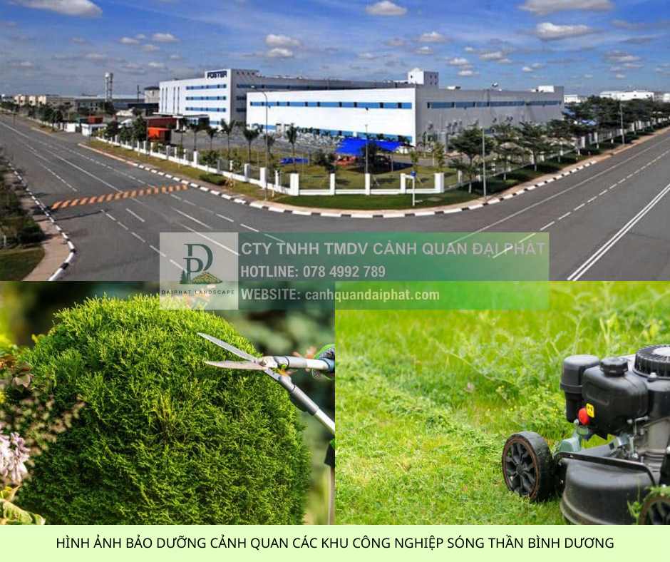 V. Kết Luận & Liên Hệ CẢNH QUAN ĐẠI PHÁT Việc duy trì cảnh quan xanh và môi trường vệ sinh công nghiệp đạt chuẩn là yếu tố không thể thiếu cho sự phát triển bền vững tại KCN Sóng Thần.