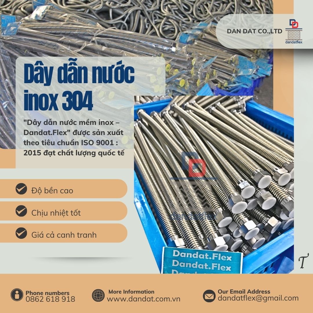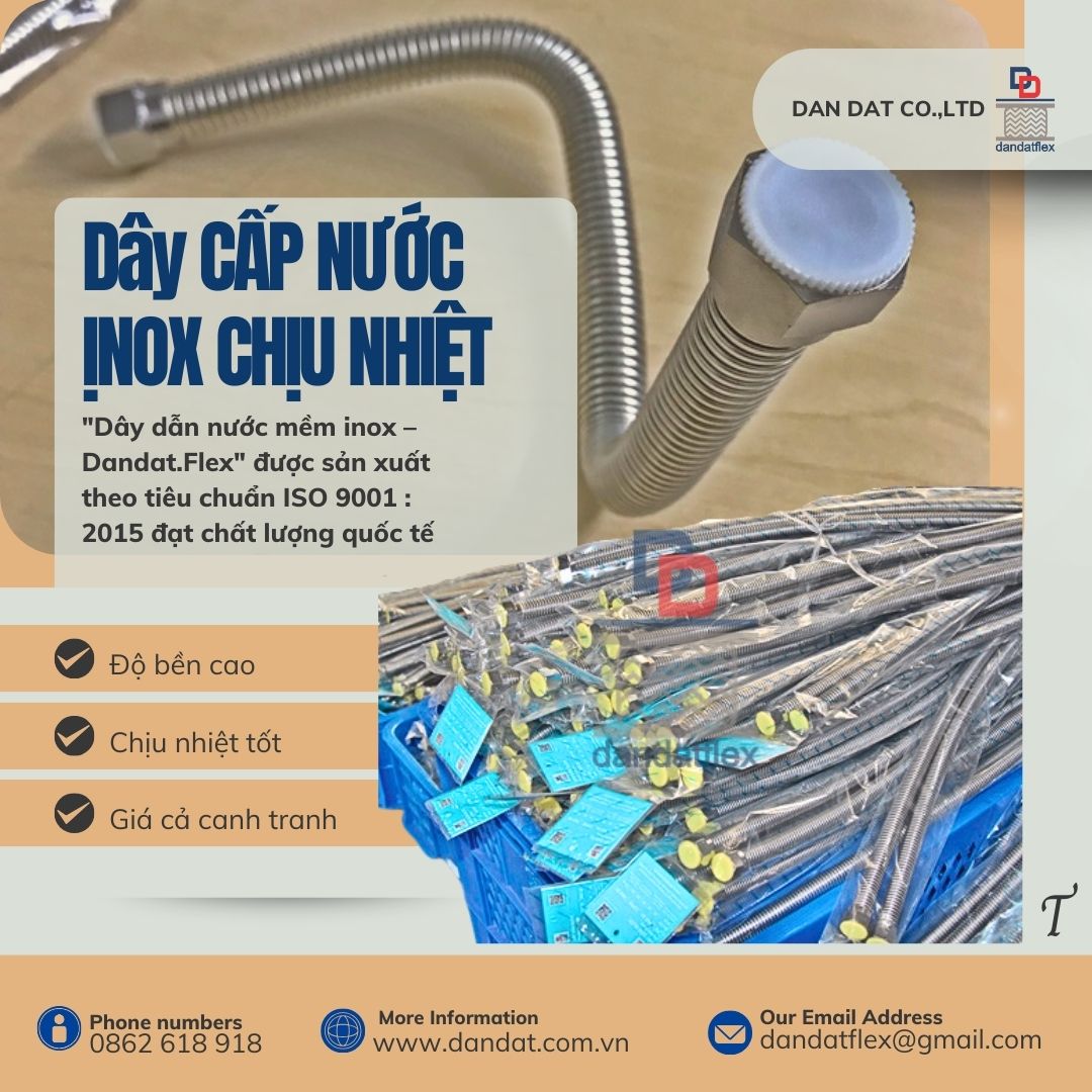Dây Dẫn Nước Inox Dân Đạt – Giải Pháp Tiện Lợi Cho Hệ Thống Cấp Nước Nóng Lạnh 1. Giới Thiệu Về Dây Dẫn Nước Inox Dân Đạt Dây dẫn nước inox (hay còn gọi là dây dẫn nước inox nóng lạnh) là một trong những phụ kiện không thể thiếu trong hệ thống cấp nước gia đình và công trình. Với chất liệu inox cao cấp, dây cấp nước Dân Đạt mang lại độ bền vượt trội, khả năng chịu nhiệt tốt và đảm bảo an toàn cho nguồn nước sử dụng.