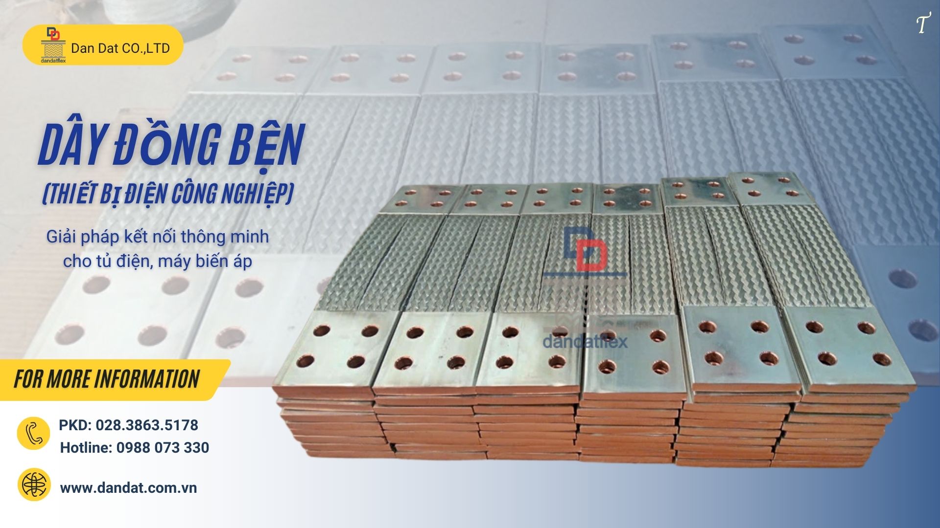 Dandat.Flex tự hào là đơn vị hàng đầu tại khu vực TP.HCM chuyên sản xuất và kinh doanh : Khớp nối mềm, khớp giãn nở, ống luồn dây điện, ống mềm nối đầu phun Sprinkler, dây dẫn nước inox, dây đồng bện, bô chống rung inox, ống chôn bê tông, ống lưới inox, đầu nối phụ kiện các loại,...giá cả phải chăng với nhiều năm kinh nghiệm Tính năng vượt trội của dây đồng bện mạ thiếc Dandat.Flex: • Khả năng dẫn điện cao: Sử dụng đồng nguyên chất, bện đều, hạn chế điện trở tiếp xúc. • Chống oxy hóa vượt trội: Lớp mạ thiếc giúp dây không bị gỉ sét, bền trong môi trường ẩm hoặc ngoài trời. • Mềm dẻo, dễ thi công: Thiết kế dạng bện cho phép lắp đặt tại những vị trí cong gấp, rung động mạnh. • Chống rung hiệu quả: Ứng dụng trong máy biến áp, máy phát điện, giúp giảm tác động cơ học. – Khớp đồng mềm, Khớp nối đồng bện mềm, Khớp nối đồng mềm,Khớp nối mềm busway, Thanh nối đồng mềm cho hệ thống điện công trình – Thanh nối đồng mềm, Thanh đồng mềm nối busway và máy phát điện, thanh cái đồng mềm nối máy biến áp – Flexible busbar, Flexible copper busbar, Flexible copper braid, Flexible copper connector, Copper braid, Busbar braid,.. – Dây đồng bện, Dây đồng bện mạ thiếc, Dây đồng bện tiếp địa thang máng cáp, Dây đồng bện tiếp địa tủ điện, Dây đồng bện tiếp địa mặt bích, Cáp đồng bện tiếp địa, Cáp đồng bện tiếp địa thang máng cáp, Cáp đồng bện thiếp địa cho tủ bảng điện - Ống ruột gà inox 304, Ống ruột gà luồn dây điện inox 304, Ống ruột gà inox 304 bọc nhựa PVC, Ống ruột gà lõi thép bọc nhựa bọc lưới Tất cả các sản phẩm của Dandat.Flex được trực tiếp sản xuất theo yêu cầu của khách hàng và hoàn toàn phù hợp đa dạng với các công trình dân dụng lẫn công nghiệp.