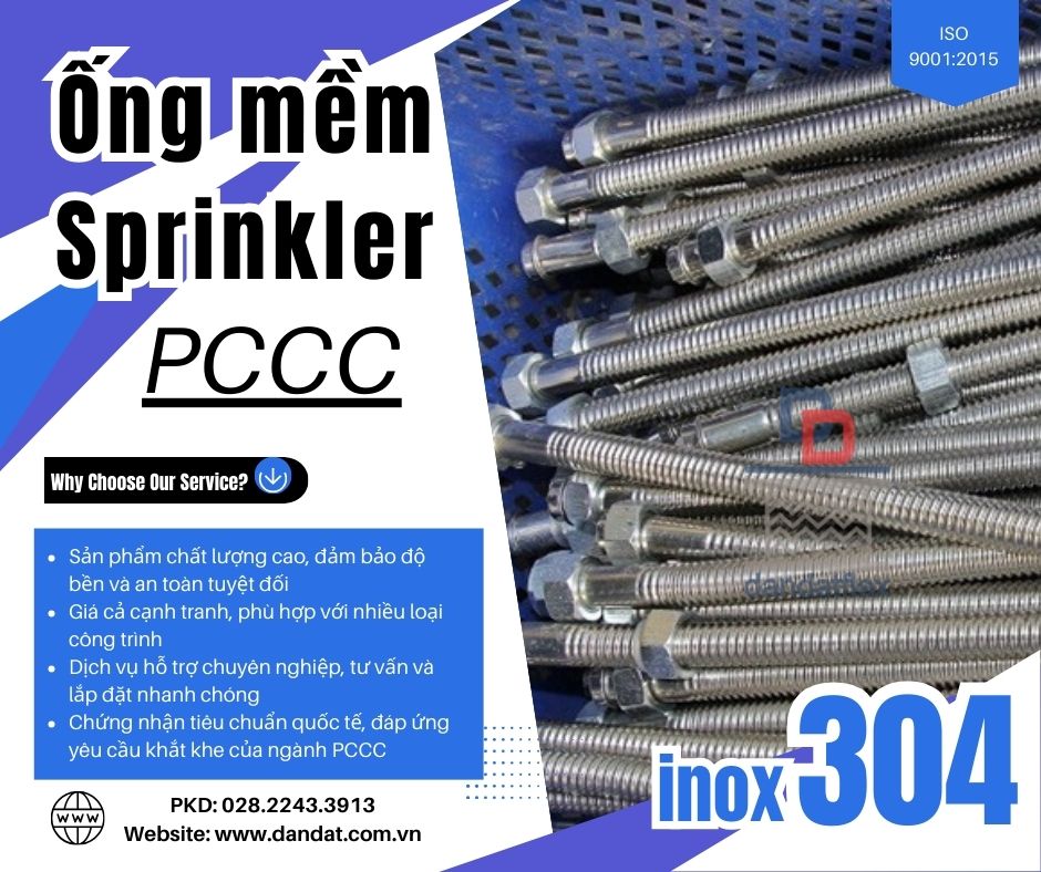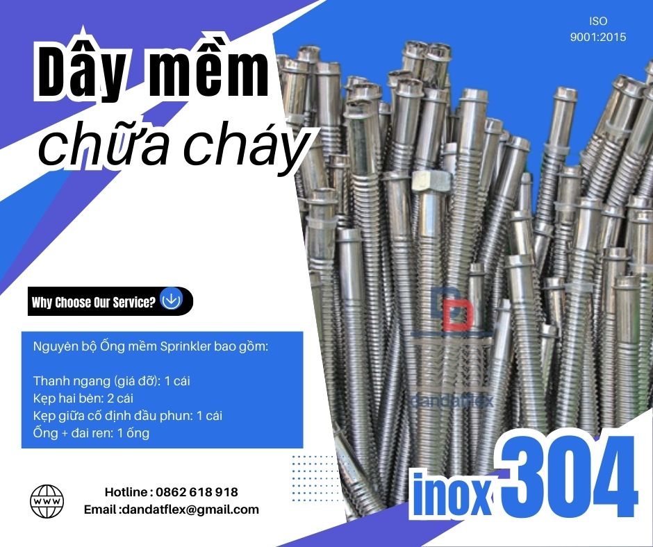 Ống mềm chữa cháy Dân Đạt là một phần quan trọng trong các hệ thống phòng cháy chữa cháy, được thiết kế để kết nối với đầu phun sprinkler, đảm bảo hiệu quả chữa cháy tức thời khi xảy ra sự cố. Với khả năng linh hoạt và dễ dàng lắp đặt, sản phẩm này giúp tối ưu hóa chi phí và thời gian thi công cho các công trình xây dựng. Tên gọi phổ biến của ống mềm nối đầu phun sprinkler ? Ống mềm nối đầu phun Sprinkler hay còn được gọi là Ống nối mềm kết nối đầu phun chữa cháy Sprinkler, Đầu nối mềm cho đầu phun Sprinkler, Ống mềm cứu hỏa, Ống mềm chữa cháy, Ống mềm kết nối đầu phun chữa cháy, Dây mềm inox nối đầu phun chữa cháy, Dây mềm nối đầu phun Sprinkler, Ống mềm Sprinkler PCCC, Ống mềm kết nối đầu phun Sprinkler, Ống mềm cho đầu phun chữa cháy, Ống nối mềm Sprinkler, Ống inox kết nối đầu phun chữa cháy Sprinkler,… Nguyên bộ Ống mềm Sprinkler bao gồm: - Thanh ngang (giá đỡ): 1 cái - Kẹp hai bên: 2 cái - Kẹp giữa cố định đầu phun: 1 cái - Ống + đai ren: 1 ống Lợi Ích Khi Sử Dụng Ống Mềm Chữa Cháy Dân Đạt 1. Giảm thiểu chi phí thi công: Sản phẩm dễ dàng lắp đặt, không cần đến các công đoạn phức tạp như hàn ống thép, giúp giảm chi phí nhân công. 2. An toàn tuyệt đối: Với chất liệu inox cao cấp, ống mềm Dân Đạt bảo đảm an toàn tuyệt đối trong việc vận hành, không xảy ra hiện tượng rò rỉ nước hay hỏng hóc trong suốt quá trình sử dụng. 3. Giải pháp tối ưu cho các công trình hiện đại: Ống mềm chữa cháy Dân Đạt phù hợp với mọi loại công trình từ dân dụng đến công nghiệp, đáp ứng nhu cầu khắt khe của các công trình hiện đại.