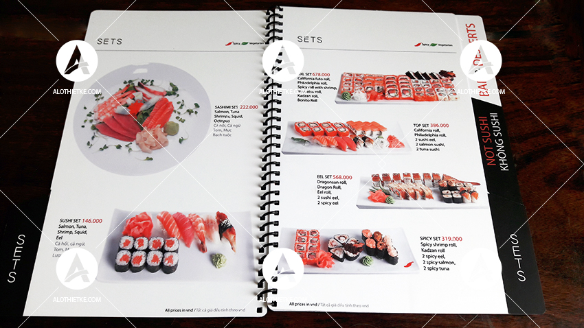 Ở các nhà hàng, quán ăn, quán café hiện nay. Menu là dòng sản phẩm không thể thiếu trong kinh doanh, nó là sản phẩm rất quan trọng để mang món ăn, thức uống của bạn đến với thực khách qua cái nhìn đầu tiên. Alothietke với kinh nghiệm thiết kế menu đặc biệt là menu nhựa bởi đặc tính tiện dụng, nhưng không kém phần sang trọng dành cho các quán ăn, quán café, nhà hàng ....... Chúng tôi sẽ mang đến sự hấp dẫn, lôi cuốn trong từng trang menu.