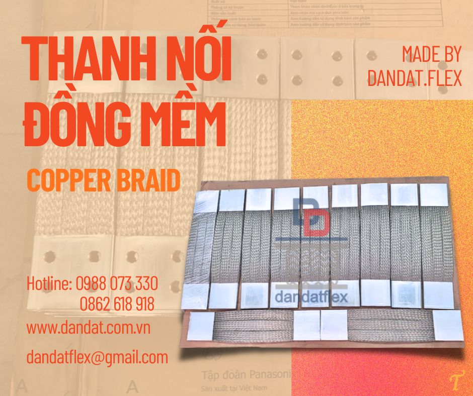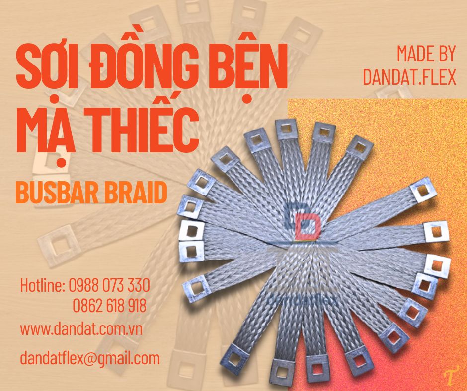 Tính năng vượt trội của dây đồng bện mạ thiếc Dandat.Flex: • Khả năng dẫn điện cao: Sử dụng đồng nguyên chất, bện đều, hạn chế điện trở tiếp xúc. • Chống oxy hóa vượt trội: Lớp mạ thiếc giúp dây không bị gỉ sét, bền trong môi trường ẩm hoặc ngoài trời. • Mềm dẻo, dễ thi công: Thiết kế dạng bện cho phép lắp đặt tại những vị trí cong gấp, rung động mạnh. • Chống rung hiệu quả: Ứng dụng trong máy biến áp, máy phát điện, giúp giảm tác động cơ học. – Khớp đồng mềm, Khớp nối đồng bện mềm, Khớp nối đồng mềm,Khớp nối mềm busway, Thanh nối đồng mềm cho hệ thống điện công trình – Thanh nối đồng mềm, Thanh đồng mềm nối busway và máy phát điện, thanh cái đồng mềm nối máy biến áp – Flexible busbar, Flexible copper busbar, Flexible copper braid, Flexible copper connector, Copper braid, Busbar braid,.. – Dây đồng bện, Dây đồng bện mạ thiếc, Dây đồng bện tiếp địa thang máng cáp, Dây đồng bện tiếp địa tủ điện, Dây đồng bện tiếp địa mặt bích, Cáp đồng bện tiếp địa, Cáp đồng bện tiếp địa thang máng cáp, Cáp đồng bện thiếp địa cho tủ bảng điện - Ống ruột gà inox 304, Ống ruột gà luồn dây điện inox 304, Ống ruột gà inox 304 bọc nhựa PVC, Ống ruột gà lõi thép bọc nhựa bọc lưới