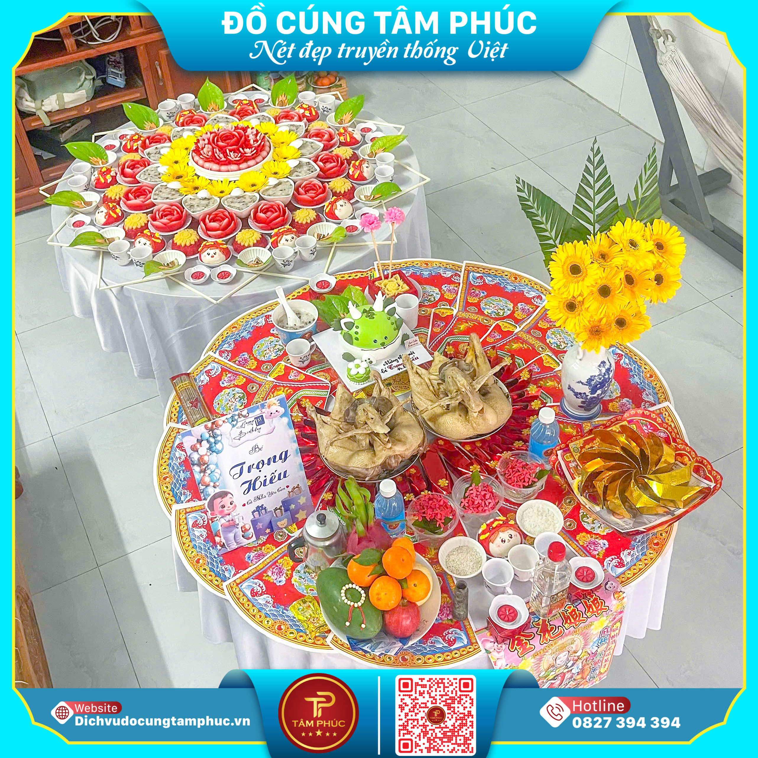 - Hiểu được ý nghĩa thiêng liêng đó, dịch vụ mâm cúng đầy tháng trọn gói ra đời nhằm giúp gia đình chuẩn bị lễ cúng đầy đủ – đúng lễ – đúng phong tục, nhưng vẫn tiết kiệm thời gian và công sức. Mỗi mâm cúng được chuẩn bị chỉn chu từ lễ vật, cách bày trí cho đến văn khấn, thể hiện trọn vẹn lòng thành kính và yêu thương dành cho bé yêu.