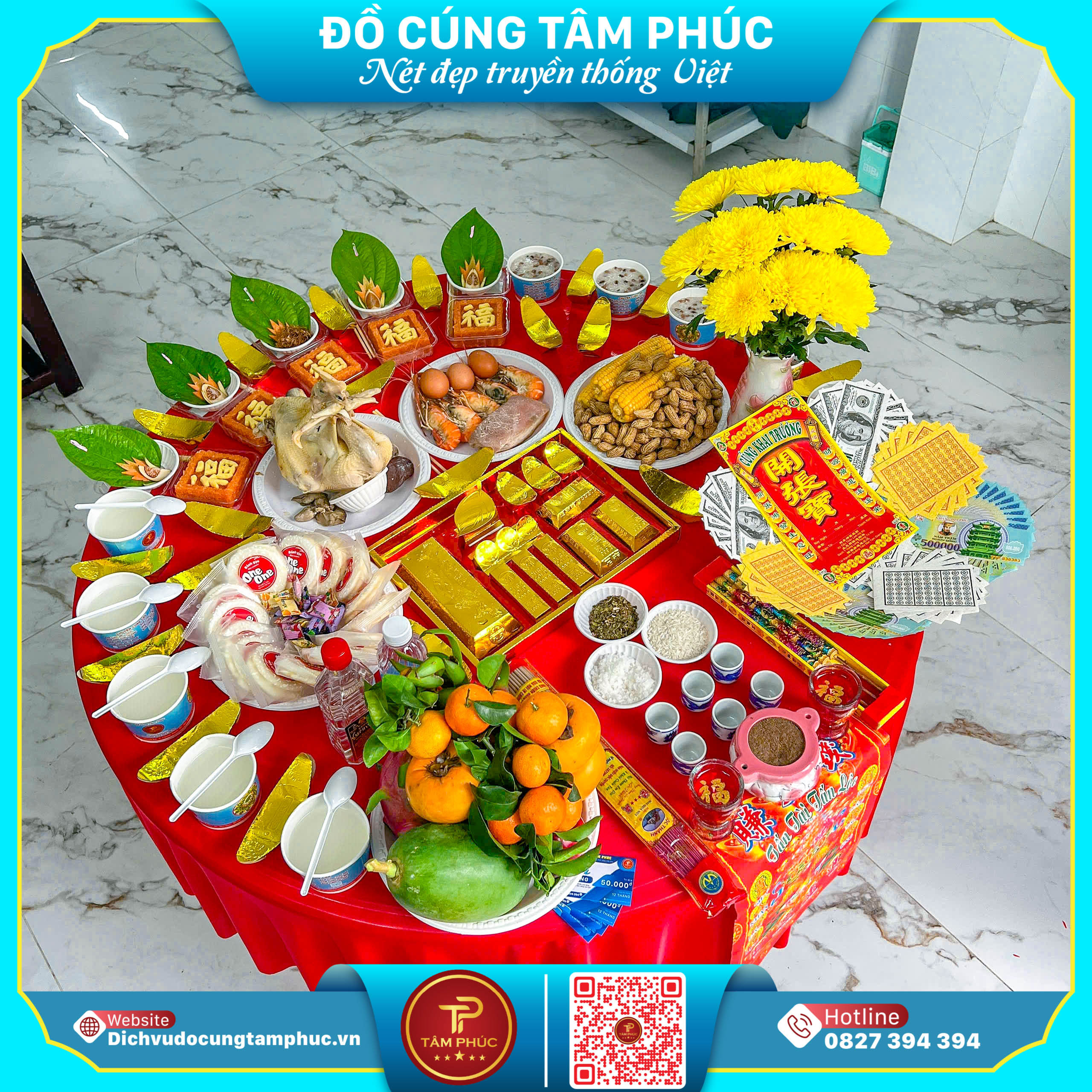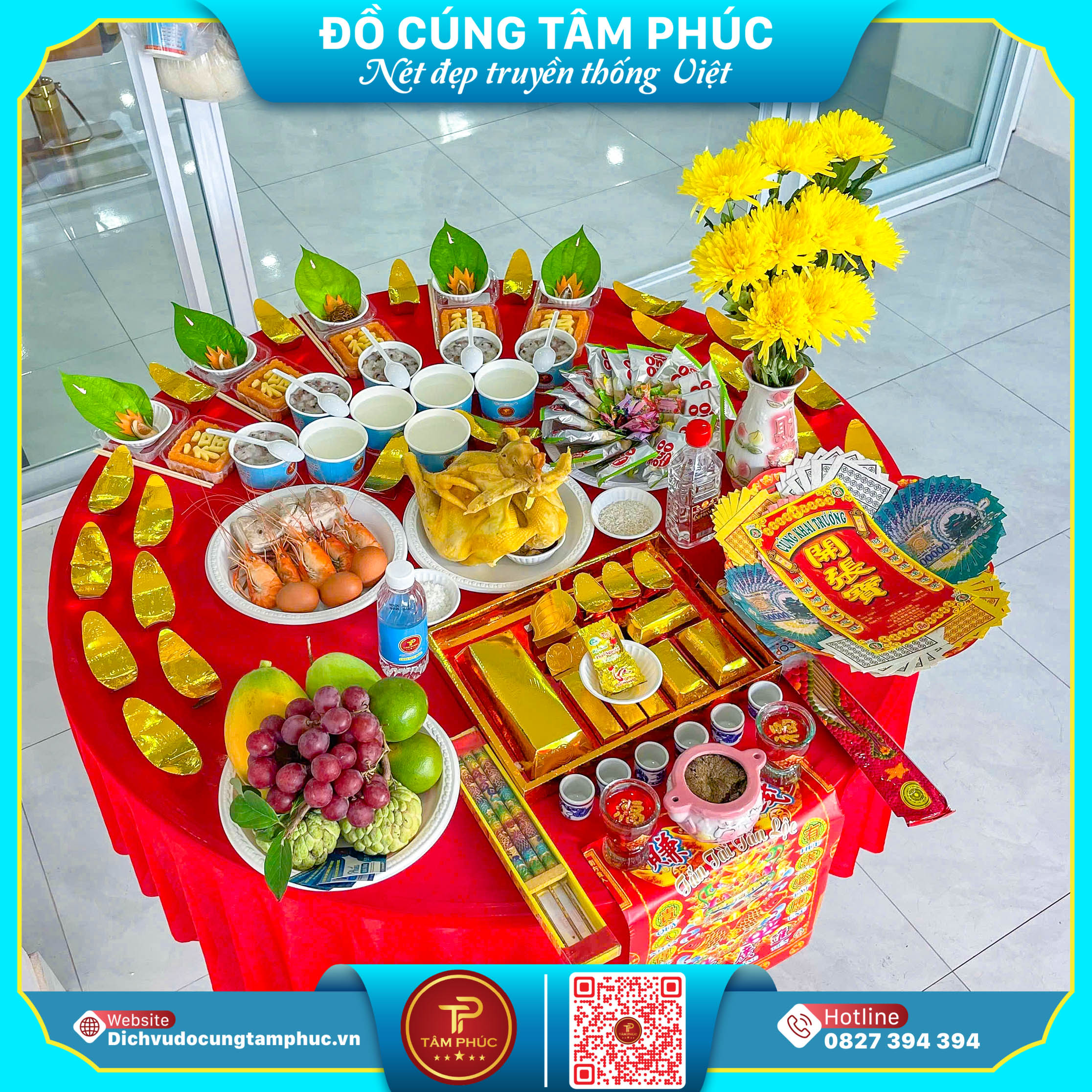 Khai trương là thời khắc mở đầu đầy may mắn cho cửa hàng, công ty hay văn phòng. Một mâm cúng khai trương trọn gói được chuẩn bị chu đáo không chỉ bày tỏ lòng thành kính với Thần Tài – Thổ Địa mà còn cầu cho việc kinh doanh hanh thông, tài lộc nở rộ, khách vào nườm nượp. Mâm cúng khai trương trọn gói gồm những gì? Tâm Phúc chuẩn bị đầy đủ - đẹp mắt - đúng nghi lễ: -Heo quay hoặc gà luộc lễ -Xôi - chè - bánh bao -Mâm ngũ quả tài lộc -Nhang, đèn, giấy tiền vàng mã -Rượu - trà - nước -Hoa tươi, trái cây đẹp, trang trí hài hòa -Bài vị khai trương – Văn khấn chuẩn Vì sao khách chọn mâm cúng trọn gói Tâm Phúc? -Nghi lễ chuẩn chỉnh - lễ vật tươi mới mỗi ngày -Trang trí đẹp mắt, nổi bật - lên hình sang trọng -Giao hàng nhanh - đúng giờ khai trương -Dễ đặt - hỗ trợ tư vấn tận tâm từ A-Z Liên hệ Tâm Phúc để được chuẩn bị mâm khai trương đầy đủ – đón lộc suốt năm! DỊCH VỤ ĐỒ CÚNG TRỌN GÓI TÂM PHÚC – 6 CHI NHÁNH TRÊN CẢ NƯỚC 🌏 Trụ sở chính: 85/4 đường số 10, KP.9, P. Linh Xuân, TP. Thủ Đức, TP.HCM 🏡 CN Bình Dương: 296 đường Trần Hưng Đạo, TP. Dĩ An, T. Bình Dương 🏡 CN Cần Thơ: 29B đường số 3, KDC Hồng Phát, P. An Bình, Q. Ninh Kiều, TP. Cần Thơ 🏡 CN Vũng Tàu: 69 đường Lê Quang Định, P. Thắng Nhất, TP. Vũng Tàu, T. Bà Rịa – Vũng Tàu 🏡 CN Côn Đảo: Đường Nguyễn Hữu Tiến, Khu 7, H. Côn Đảo, T. Bà Rịa – Vũng Tàu 🏡 CN Đất Đỏ: 658 QL55, KP. Tường Thành, TT. Đất Đỏ, T. Bà Rịa – Vũng Tàu 🌻 Zalo: 0827.394.394 (Đồ Cúng Cần Thơ) ☎️ Hotline tư vấn 24/7: 0827.394.394 🌍 Website: https://dichvudocungtamphuc.vn/