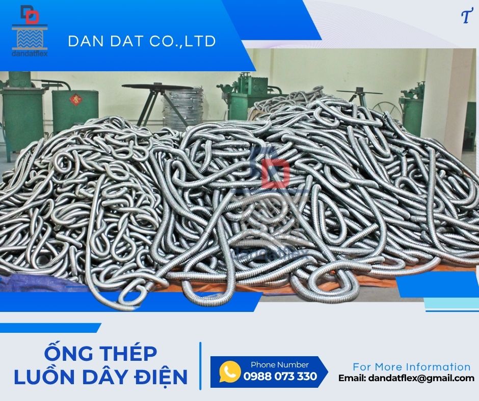 Dan Dat Co.,LTD - Chuyên sản xuất và phân phối ống ruột gà lõi thép, ống ruột gà lõi thép bọc nhựa, ống ruột gà lõi thép bọc lưới, ống ruột gà lõi thép bọc nhựa bọc lưới, ống ruột gà lõi thép bọc nhựa mềm PVC, ống luồn dây điện, ống ruột lõi thép bọc nhựa chống cháy nổ, ống ruột gà lõi thép chống thấm nước và dầu,..Thường được dùng để luồn dây điện trong các công trình thi công điện, tự động hóa, tủ điều khiển, dây chuyền tự động,...Dùng được cả trong nhà và ngoài trời.