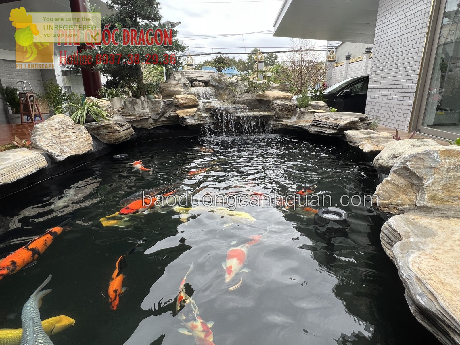 Hồ kiểu thác đổ được thiết kế như một bức tranh thủy mặc trong sân vườn là điểm thư giãn lý tưởng và thú vị không kém phần hấp dẫn. Việc đan xen trồng cây tự nhiên vào hồ sẽ là môi trường tốt cho cá Koi sinh trưởng và phát triển tốt, tạo bóng mát cho hồ và điều hòa nhiệt độ cho cả khu vườn. Thiết kế hồ cá Koi ngay trong sân vườn đang là sở thích của nhiều chủ biệt thự nhà vườn. Những chú cá chép Koi được tượng trưng cho vận may, thành công, phồn thịnh, trường thọ và sự giàu có về tiền bạc cho gia chủ. Mỗi màu sắc cá chép Koi lại mang một ý nghĩa đặc biệt khác nhau và thể hiện mong ước của gia chủ. Bạn có thể sử dụng đá để trang trí cho hồ cá Koi của mình trở nên hữu tình và mang nét đẹp độc đáo không lẫn vào bất cứ đâu. Đá có thể xếp thành những đường viền và thành hồ xung quanh, hay cũng có thể trang trí đá cho hồ cá Koi thành thác nước nhân tạo, hoặc độc đáo hơn nữa là xếp đá thành các bước đi trên mặt hồ. Hãy liên hệ với PHÚ QUỐC LANDSCAPE qua HOTLINE 0937.382.936 – 0907.732.936 để nhận được sự tư vấn chuyên nghiệp từ những kiến trúc sư giàu kinh nghiệm trong ngành. Chúng tôi tin chắc sẽ làm hài lòng Quý khách! Chúng tôi chuyên cung cấp dịch vụ tại TPHCM, Bình Dương, Đồng Nai. --------------------------------------------------------- CÔNG TY TNHH TM - DV PHÚ QUỐC DRAGON Construction - Landscape Văn phòng chính : Số 86, tổ 02, ấp 05, xã An Phước, huyện Long Thành, tỉnh Đồng Nai. Chi nhánh: 911 Phạm Văn Đồng, Khu Phố 3, phường Linh Tây, Quận Thủ Đức, TPHCM. Mobile : 0937.38.29.36 Website : www.baoduongcanhquan.com