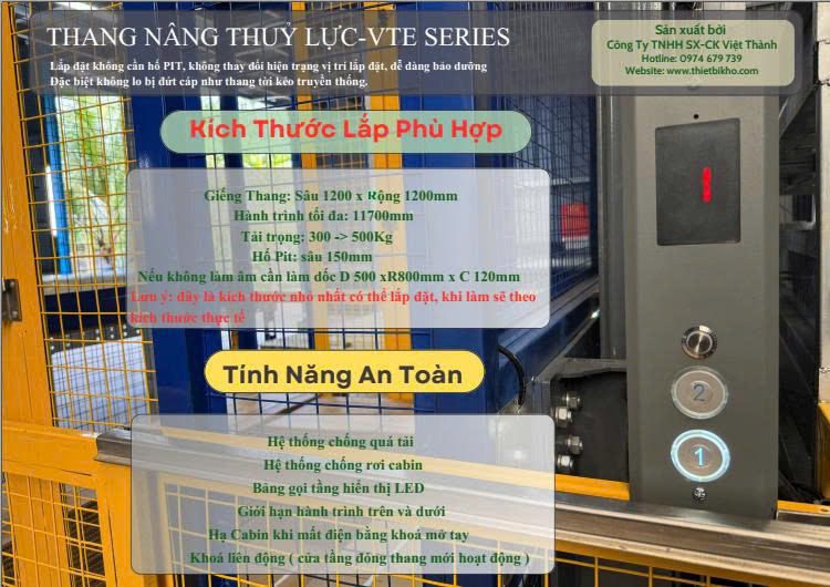 Thang Nâng Thủy Lực VTE - Series Dòng thang bán chạy nhất tại cơ khí Việt Thành Hỗ trợ vận chuyển hàng hóa nhanh chóng, an toàn và tiện lợi Tải trọng: 300kg đến 3000kg Chiều cao nâng: Từ 1m đến 8m Kích thước tùy chỉnh theo yêu cầu của khách hàng Chế độ hạ sàn khi cúp điện Chống kẹt, dừng khi va chạm Hệ thống chống bể đường ống ty ben Khung thang được sơn tĩnh điện Bảo hành 12 tháng Lựa chọn sản phẩm tại: https://thietbikho.com/san-pham/thang-nang-hang-thuy-luc/ Liên hệ: 0974679739 Mr. Cường