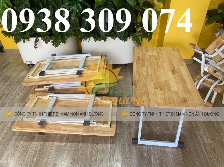Bàn gỗ mầm non, ghế gỗ mầm non, bàn ghế gỗ nhà trẻ BÀN GHẾ GỖ MẦM NON Chất liệu : gỗ cao su 18 ly Đa dạng các loại bàn ghế : bàn bán nguyệt gỗ , bàn gập chân gỗ, bàn ăn nhà trẻ, ghế gỗ cho mầm chồi lá,.... CÔNG TY THIẾT BỊ MẦM NON ÁNH DƯƠNG 54/19 Bùi Quang Là, Phường 12, Gò Vấp, Tp. Hồ Chí Minh 5/5 Tô Ký, ấp mới 2, Trung Chánh, Hóc Môn, TP.HCM HOTLINE: 0938 309 074