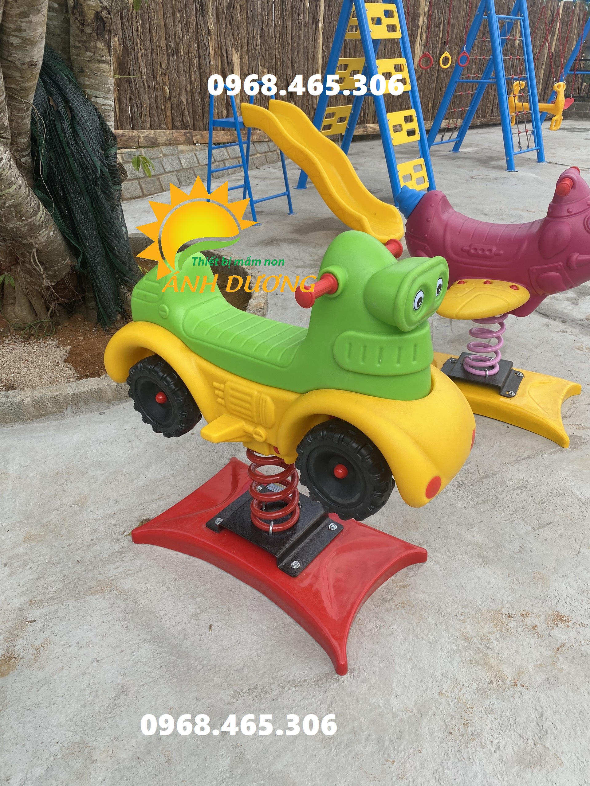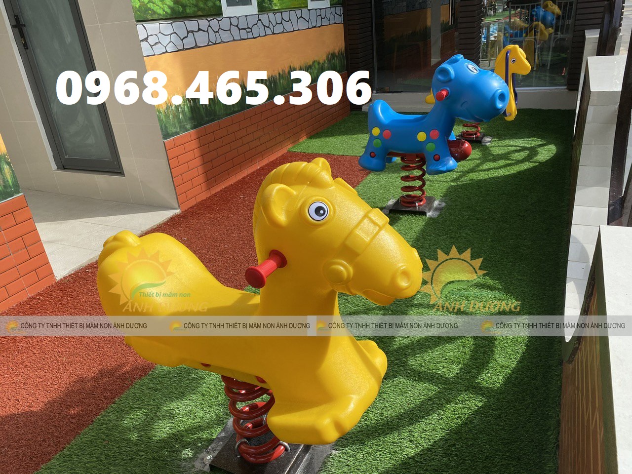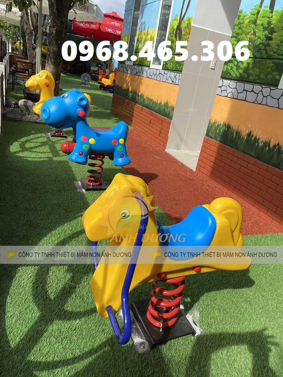 Thú nhún lò xo là những thiết bị vui chơi được yêu thích trong các khu vui chơi, trường mầm non, công viên hay khuôn viên gia đình. Với thiết kế sinh động, bắt mắt cùng khả năng giúp trẻ vận động Sản phẩm có độ cao vừa phải, được đúc bằng nhựa composite. Khung trụ bằng lò xo thép. Đế bằng bê tông phủ lớp nhựa composite. Phần chân đế chắc chắn được làm bằng bản mã dập dày dặn, chắc chắn và được cố định bằng vít lỏ sắt có khả năng chịu lực tốt. Phần lò xo có độ đàn hồi tốt, vừa làm bệ đỡ cho bé vừa giúp tạo độ nhún cho sản phẩm. Vì vậy sản phẩm luôn bền bỉ, chắc chắn dù sử dụng bất cứ nơi nào dù trong nhà hay ngoài trời.