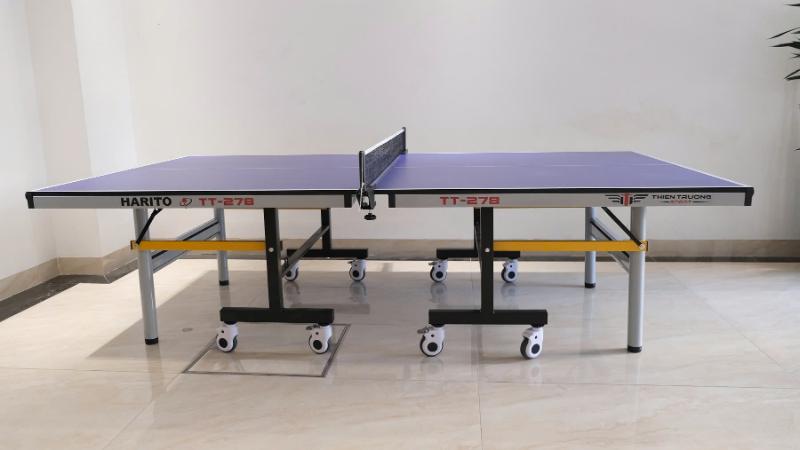 2. Đặc điểm nổi bật của bàn bóng bàn Harito TT-278 - Mặt bàn sử dụng gỗ MDF có độ dày 18mm, tính ổn định cao, đáp ứng tiêu chuẩn tập luyện quốc tế. Bề mặt được sơn chống lóa, phẳng mịn, giúp người chơi dễ dàng quan sát đường đi của bóng rõ ràng và hạn chế tình trạng chói mắt trong thời gian dài sử dụng. - Sản phẩm có kèm cọc lưới tiêu chuẩn và được trang bị sẵn khi mua bàn vô cùng tiện lợi. - Thiết kế nửa mặt bàn tách biệt và có thể gập gọn tiện lợi khi không sử dụng. - Sản phẩm còn có hệ thống cân chỉnh chân bàn, cho phép người dùng có thể cân chỉnh mặt bàn phù hợp với từng sàn khác nhau. >> Tham khảo chi tiết về sản phẩm: https://thethaothientruong.vn/ban-bong-ban-harito-tt-278
