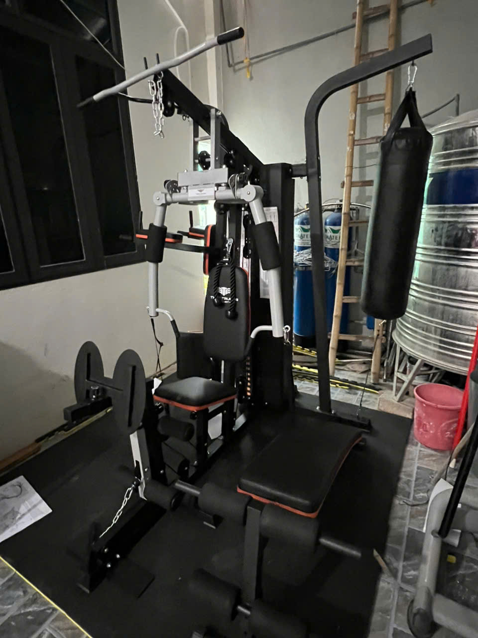 - Trọng lượng tạ: 76kg. - Trọng lượng giàn tạ: 142kg. - Trọng lượng bao cát đi kèm: 28kg. - Tải trọng tối đa: 300kg. - Kích thước lắp đặt: 1940 x 1900 x 2350 mm. - Đóng thùng: 7 kiện/bộ. HQ-808I hỗ trợ nhiều bài tập như tập cơ ngực, các bài tập tay, các bài tập với dây kéo xô, bài tập chân, tập xà đơn - xà kép, gập bụng, tập boxing,..... Để được tư vấn và hỗ trợ nhanh nhất, các bạn có thể liên hệ trực tiếp đến chúng tôi qua số hotline 0846991199 để được tư vấn và hỗ trợ nhanh nhất. 2. Ưu điểm nổi bật của giàn tạ đa năng HQ-808I Giàn tạ đa năng HQ-808I tập tại gia đình như một phòng thể hình mini tại nhà thiết kế hiện đại, chắc chắn, chịu lực lớn. Khung giàn tạ được làm từ chất liệu thép chắc chắn, chịu lực tối đa đến 245kg, phủ sơn tĩnh điện chống rỉ sét. Ghế ngồi và bộ phận tập tay trước được bọc đệm da PU dày dặn, êm ái, giúp người tập trong khoảng thời gian dài mà không sợ bị mỏi. Ghế tập đi kèm hỗ trợ các bài tập bụng, đẩy tạ và có thể tùy chỉnh độ dốc của ghế phù hợp với từng bài tập nhóm cơ chuyên biệt. Giàn tạ đa năng đi kèm 13 bánh tạ với trọng lượng 76kg và điều chỉnh đến 13 mức cân nặng khác nhau. Sản phẩm có hệ thống ròng rọc và dây áp đều là loại chuyên dụng cao cấp, đảm bảo an toàn tuyệt đối, độ bền cao, 808I đáp ứng được mọi nhu cầu tập luyện. HQ-808I còn đi kèm với bao đấm có chiều dài 1.3m và trọng lượng 28kg giúp bạn có thể khởi động hoặc tập luyện boxing ngay tại nhà vô cùng tiện lợi. Sản phẩm còn có thể tích hợp được với xà đơn, xà kép, giúp bạn tập luyện phát triển toàn diện phần thân trên và cơ tay một cách hiệu quả. Nếu bạn đang muốn tìm một sản phẩm giàn tạ đa năng giá tốt, hỗ trợ nhiều bài tập, thì không thể bỏ qua sản phẩm HQ-808I, lựa chọn hoàn hảo cho gia đình, phòng tập và muốn sản phẩm tích hợp nhiều bài tập.