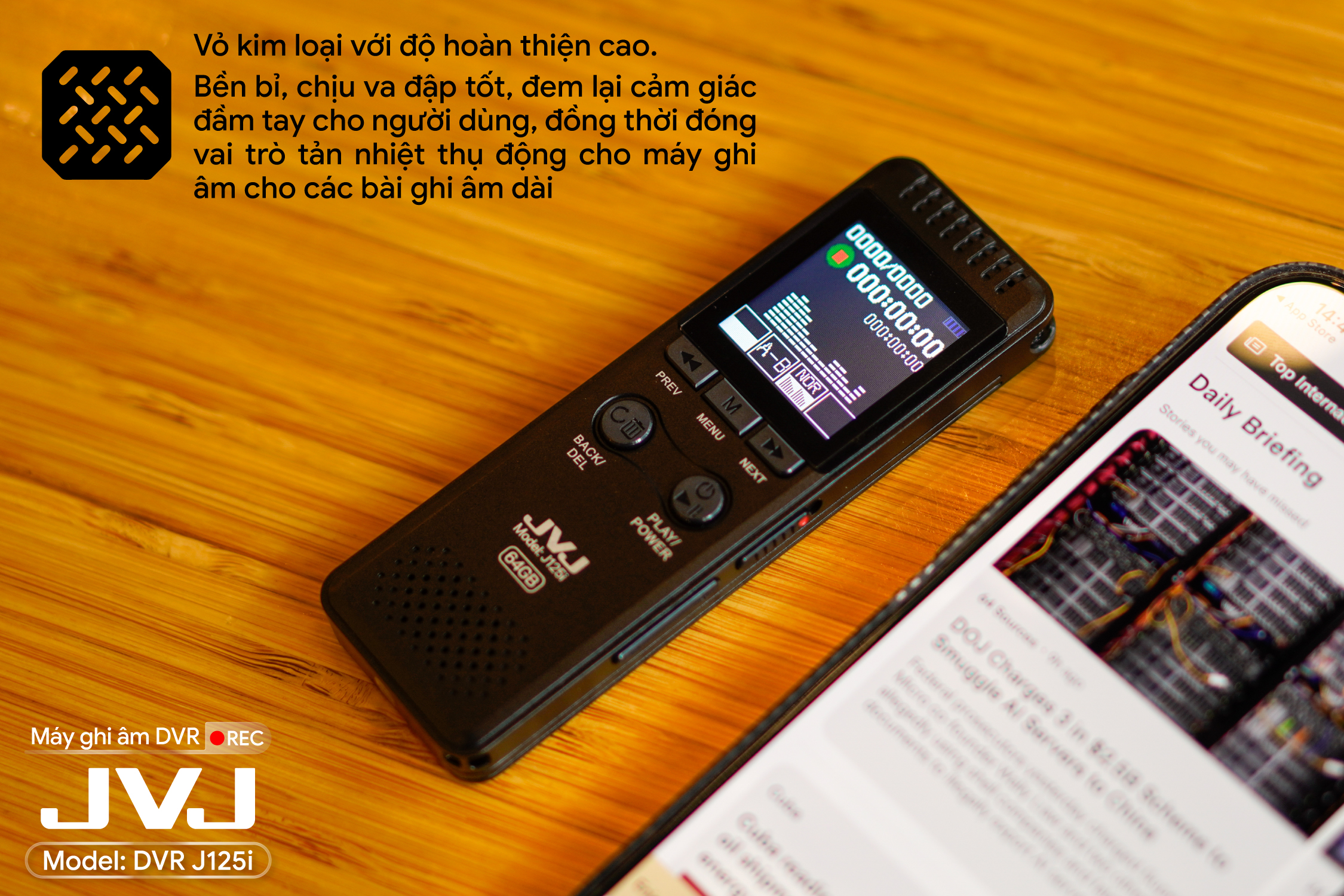 Máy ghi âm JVJ J125I 64GB là phiên bản nâng cấp của JVJ J125, với dung lượng lưu trữ gấp đôi và một số tính năng cải tiến. Ưu điểm nổi bật của JVJ J125i: Thiết kế độc đáo, cá tính. Kích thước nhỏ gọn, dễ dàng mang theo. Dung lượng 64GB cho phép ghi âm thoải mái. Chất lượng âm thanh tốt Chất liệu: Vỏ hợp kim đúc nguyên khối. Kích thước: 107mm x 35mm x 10mm, trọng lượng 100 gam. Loại Pin: Pin trong Lithium. Thời gian: pin/ ghi âm tối đa 110 giờ. Định dạng file ghi âm: MP3, WMA. Màu sắc: Màu Đen. Phụ kiện kèm theo: Cáp kết nối, Tai nghe, Thẻ bảo hành, sách HDSD. Bảo Hành: Chế độ bảo hành 12 Tháng. Nhóm người dùng phù hợp: Người làm báo, luật sư, nhà nghiên cứu, những người yêu thích phong cách cá tính và cần dung lượng lớn.