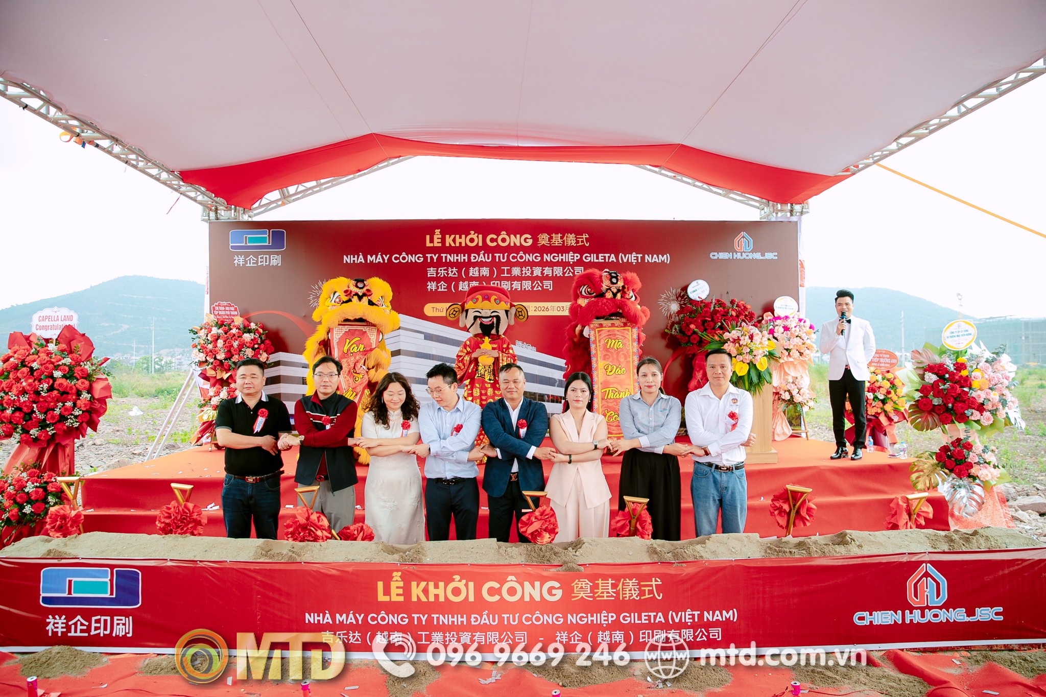LỄ KHỞI CÔNG DỰ ÁN NHÀ MÁY GILETA (VIỆT NAM) – DẤU ẤN ĐẲNG CẤP TỪ MTD Event ✨ Một sự kiện không chỉ là nghi thức, mà còn là tuyên ngôn về tầm vóc và khát vọng phát triển. Tại Bắc Giang, lễ khởi công Nhà máy Công ty TNHH Đầu tư Công nghiệp Gileta (Việt Nam) đã được MTD Event tổ chức trọn gói với tiêu chuẩn chuyên nghiệp – sáng tạo – khác biệt. 💫 Điểm nhấn nổi bật do MTD kiến tạo: Không gian sự kiện được thiết kế ấn tượng, chỉn chu đến từng chi tiết Sự giao thoa văn hóa Trung – Việt thể hiện tinh tế trong từng nghi thức Kịch bản bài bản, điều phối chuyên nghiệp, đảm bảo tiến độ và đẳng cấp Nghi thức xúc cát trang trọng – biểu tượng cho khởi đầu bền vững ❤️ Với kinh nghiệm và tâm huyết, MTD Event không chỉ tổ chức sự kiện, mà còn nâng tầm hình ảnh doanh nghiệp, tạo dấu ấn mạnh mẽ ngay từ những bước khởi đầu. ________________________________________ 🌍 MTD EVENT – GIẢI PHÁP TỔ CHỨC SỰ KIỆN TOÀN DIỆN 📳 Hotline: 096 9669 246 📩 Email: mtdjsc@gmail.com 🌐 Website: www.mtd.com.vn 📣 Facebook: tochucsukienmtd