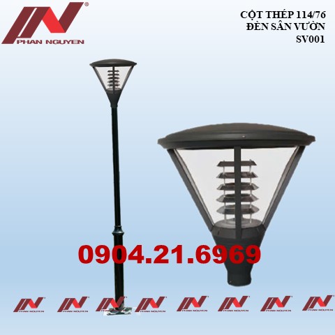 Thông tin cơ bản sản phẩm Cột đèn sân vườn 114/76 lắp đèn SV001 - Chất liệu thép - Kích thước đế phi 114, đầu cột phi 76 - Chiều cao 3-4m tùy theo nhu cầu - Mạ kẽm hoặc sơn màu theo yêu cẩu - Đèn lắp đặt SV001 - Bóng lắp đặt: led bub Cột đèn sân vườn thép mạ 114/76 lắp đèn SV001 Phan Nguyễn có thể được ứng dụng trong nhiều không gian khác nhau, từ sân vườn gia đình, biệt thự, khu dân cư, công viên, đến các khu nghỉ dưỡng, khách sạn, nhà hàng. Sản phẩm này không chỉ cung cấp ánh sáng mà còn là một yếu tố trang trí quan trọng, góp phần tạo nên vẻ đẹp tổng thể cho không gian.