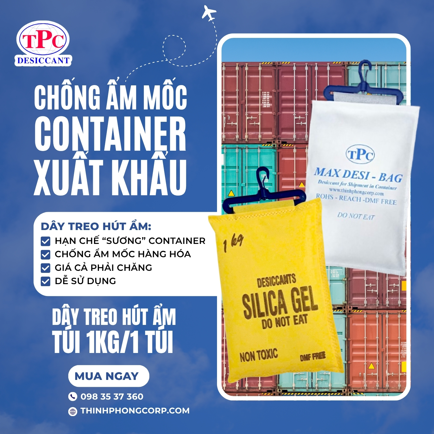 Thịnh Phong cung cấp đa dạng dây hút ẩm treo container, gói hút ẩm xuất khẩu, silica gel, clay hút ẩm với giá sỉ tận xưởng, sẵn hàng số lượng lớn.