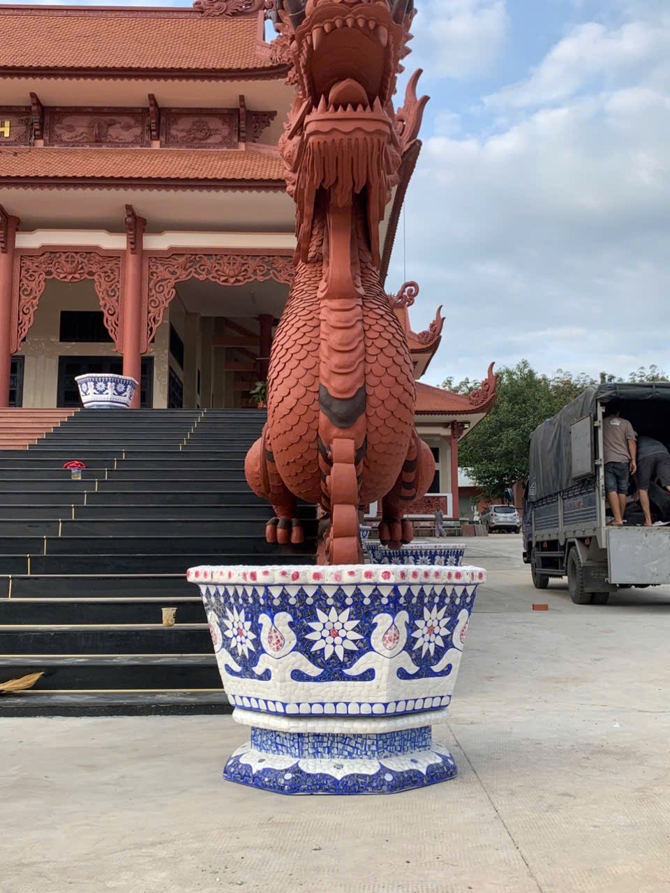 Sau khi dán miểng xong thì “chà ron” bằng ximăng trắng và vẽ màu cho tiệp theo đường màu của hoa văn... Với nhiều công đoạn như vậy, việc làm chậu kiểng không thể do một hoặc hai người làm mà phải có đông người. Trung bình một chậu làm khoảng 10 ngày.