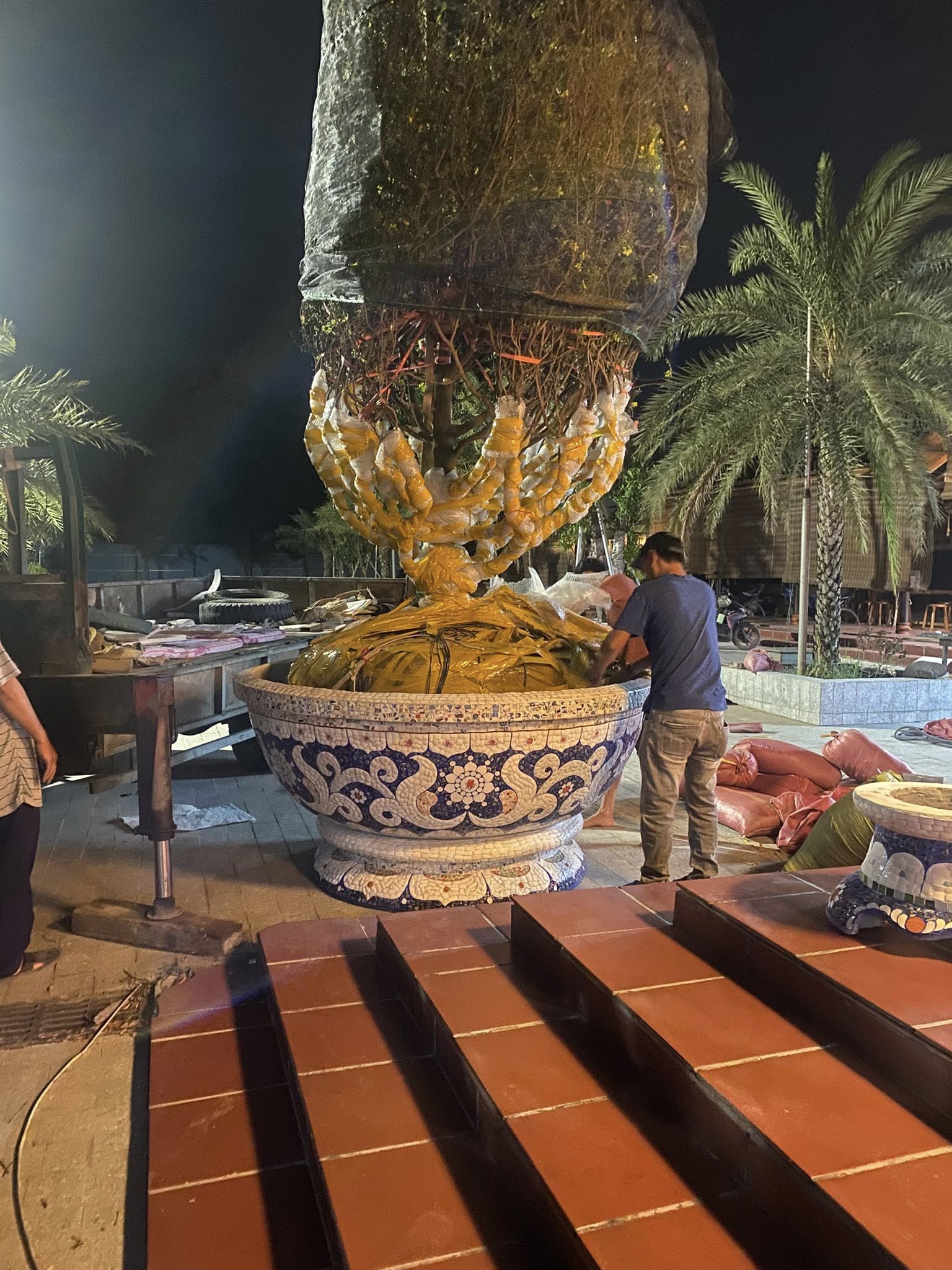 Chậu hoa _ chậu cảnh _ chậu hoa khảm miễng chén dĩa, ghép sành sứ _ chậu to