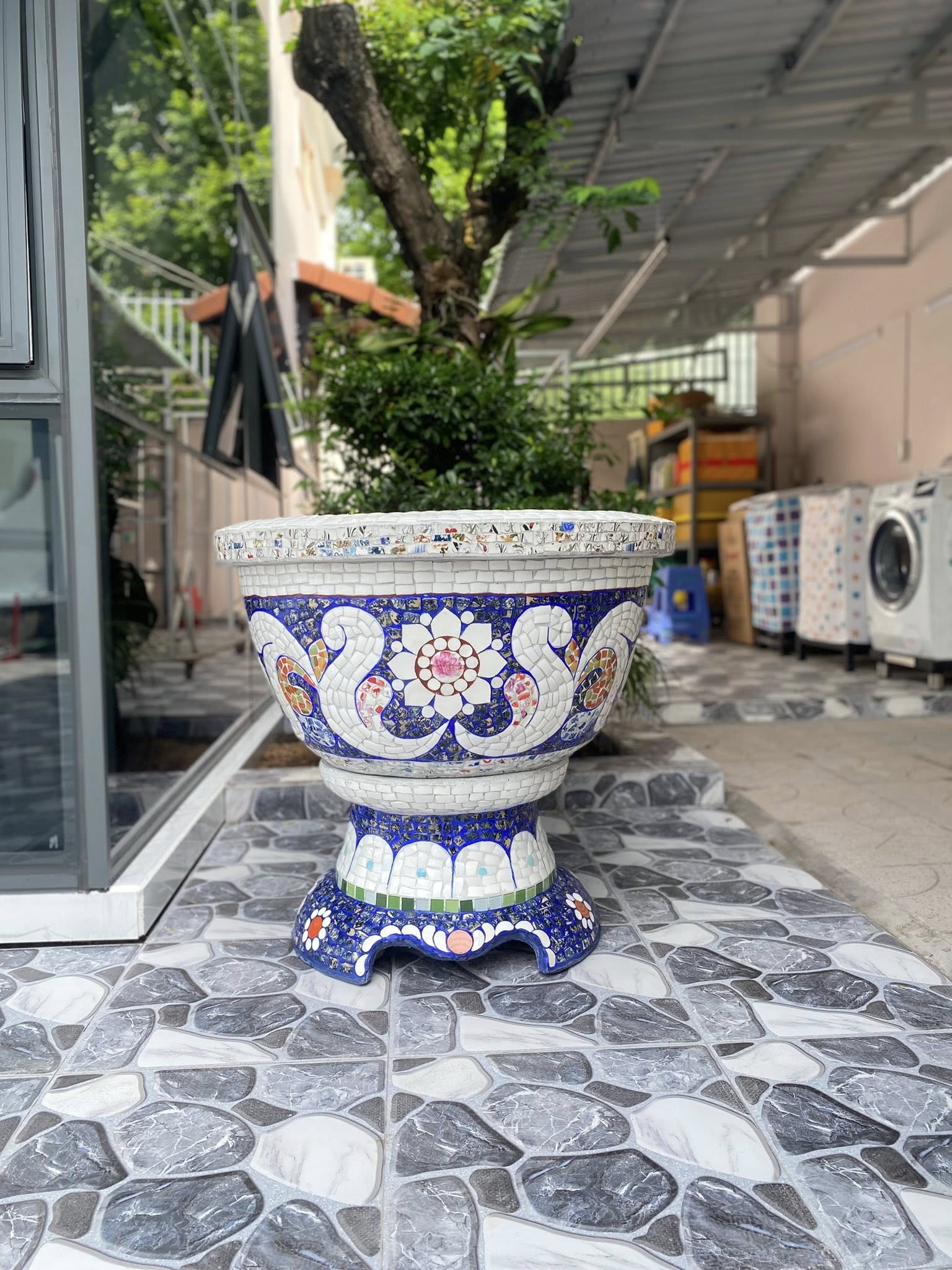 Chậu đắp tay cẩn miểng chén dĩa, thủ công mỹ nghệ Thủ Đức - Tphcm