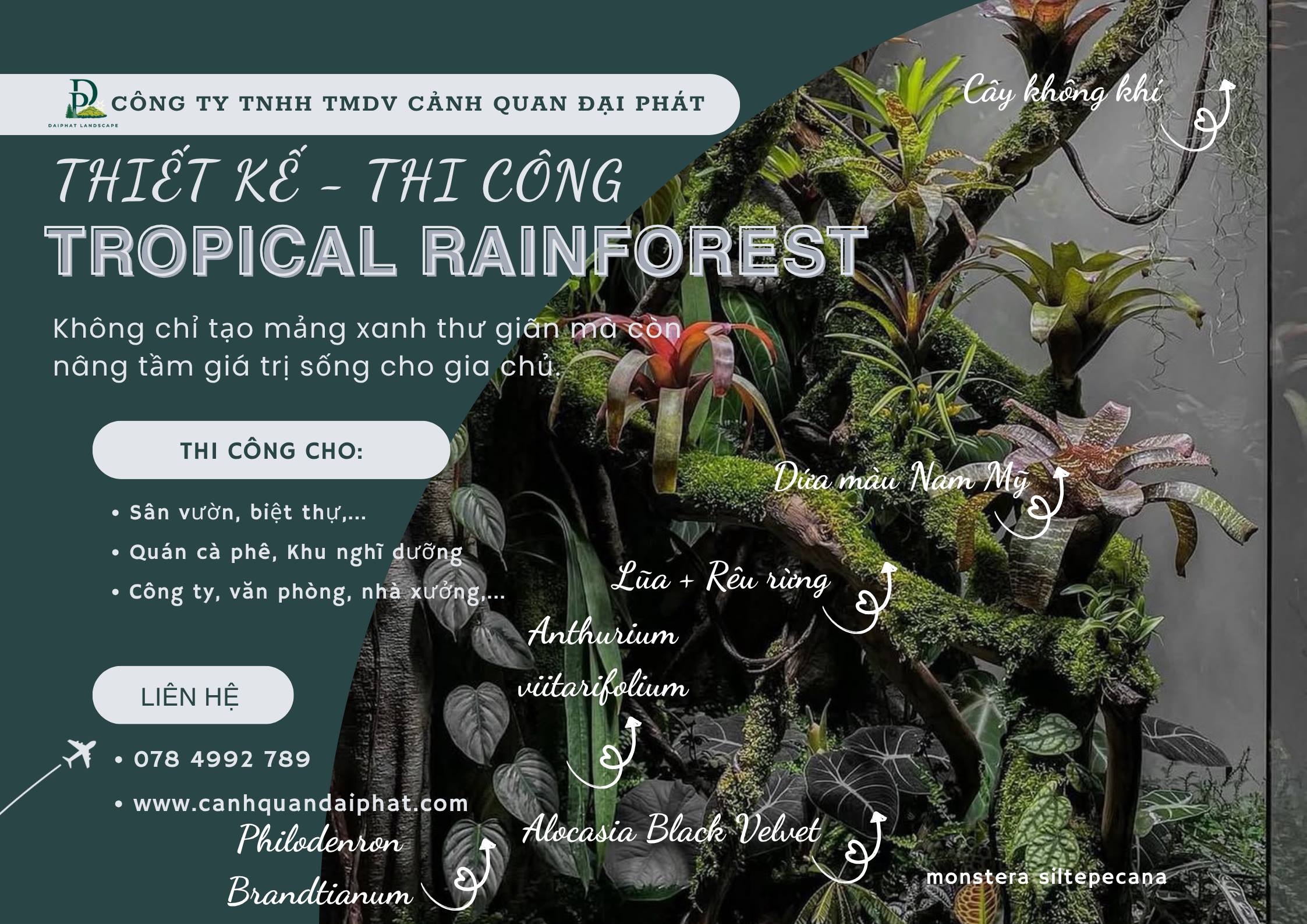 Thiết kế sân vườn nhiệt đới Tropical Rainforest Thi công tiểu cảnh cạn – tiểu cảnh bán cạn – tiểu cảnh nước Setup Vivarium – Paludarium – Terrarium – Bioactive Ecosystem Thi công hồ cá koi – thác nước – hồ thủy sinh Nature Aquarium Thiết kế cảnh quan nhà phố, biệt thự, quán cafe