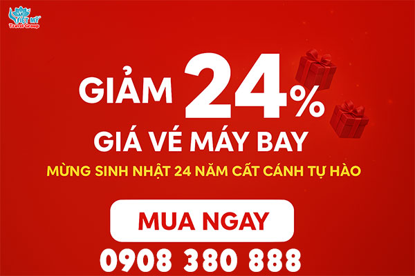 Khuyến mãi siêu hấp dẫn nhân dịp kỷ niệm 24 năm thành lập, Air Asia mừng sinh giảm 24% giá vé máy bay. Đây là cơ hội “vàng” dành cho những ai đang lên kế hoạch du lịch quốc tế với chi phí tiết kiệm tại Đại ký vé máy bay Việt Mỹ!