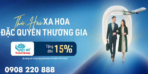 Bamboo ưu đãi vé máy bay Thứ 2 xa hoa Bamboo ưu đãi vé máy bay Thứ 2 xa hoa Bamboo ưu đãi vé máy bay Thứ 2 xa hoa Ưu đãi giá vé: Tặng 15% giá vé cơ bản cho nhóm từ 02 khách cho đường bay nội địa Hạng vé áp dụng: Tất cả các hạng Business Thời gian bán: Thứ hai ngày 1/12/2025 (Khung giờ: 2:00 – 23:59, chương trình cập nhật hàng tuần)Thời gian bay áp dụng: Từ 1/12/2025 đếm 30/03/2026, trừ giai đoạn Lễ, cao điểm. Thời gian xuất vé: Xuất vé 24 giờ trước giờ khởi hành Đối tượng áp dụng: Áp dụng cho người lớn và trẻ em, không áp dụng cho trẻ sơ sinh dưới 2 tuổi Bảng giá vé máy bay ưu đãi hạng Thương gia vào ngày Thứ 2 hàng tuần bao nhiêu tiền? Chặng bay (nội địa) Giá Business (1 chiều) tham khảo Hà Nội ↔ TP. Hồ Chí Minh 2.900.000 VNĐ Hà Nội ↔ Đà Nẵng 1.890.000 VNĐ Hà Nội ↔ Quy Nhơn 2.800.000 VNĐ Buôn Ma Thuột ↔ Hà Nội 2.880.000 TP. Hồ Chí Minh ↔ Vân Đồn 3.100.000 VNĐ *Lưu ý: Giá vé máy bay ưu đãi hạng Thương gia vào ngày Thứ 2 hàng tuần chưa bao gồm thuế phí, cập nhật ngày 1/12/2025.