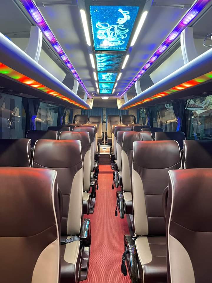 ✨ Ưu điểm xe 29 chỗ: Nội thất rộng rãi, ghế ngả thoải mái Điều hòa mạnh, cốp lớn chứa được nhiều hành lý Màn hình giải trí, âm thanh chất lượng Tài xế kinh nghiệm – lịch sự – đúng giờ