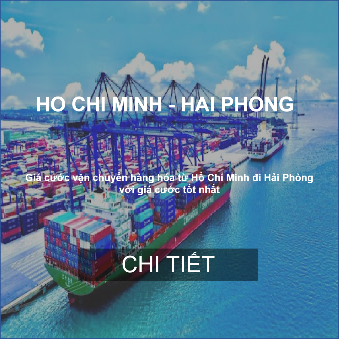 Giá cước vận chuyển hàng container từ Hồ Chí Minh đi Hải Phòng : Giá cước vận chuyển hàng hóa từ Hồ Chí Minh đi Hải Phòng : liên hệ giá cước cont 20' Giá cước vận chuyển hàng hóa từ Hồ Chí Minh đi Hải Phòng : liên hệ giá cước cont 40' Vận chuyển hàng từ Hồ Chí Minh ra Hải Phòng có các cảng chính sau: Các cảng tại Hải Phòng: Tân Cảng, Đình Vũ, Hải An Các cảng tại Hồ Chí Minh Bến Nghé, Vict Lịch tàu vận chuyển hàng container từ Hồ Chí Minh đi Hải Phòng: Lịch Tàu chạy (schedule): Thứ 3, 4, 7 và Chủ Nhật hàng tuần Thời gian tàu chạy (transit time): 3 ngày Dịch vụ vận chuyển hàng nguyên container từ Hồ Chí Minh đi Hải Phòng Vận chuyển nguyên container door - door, lấy hàng tại kho ở khu vực Phía Nam và giao tận địa chỉ ở Phía Bắc Vận chuyển từ cảng Hồ Chí Minh đến cảng Hải Phòng CY-CY Vận chuyển từ cảng Hồ Chí Minh đến địa chỉ cần giao tại miền Bắc CY-Door Vận chuyển từ kho hàng tại miền Nam đến cảng Hải Phòng Door to CY Các mặt hàng thường xuyên được vận chuyển từ Hồ Chí Minh đi Hải Phòng Các mặt hàng nông sản: rau, củ quả, gạo, bắp, các loại đậu, … Các mặt hàng máy móc thiết bị sản xuất Các mặt hàng thực phẩm