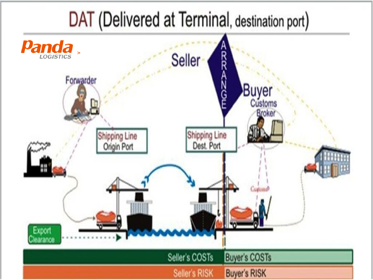 Điều kiện giao hàng DAT là gì? DAT ( Delivery at Terminal ) – Giao tại bến. “Bến” (Terminal) bao gồm bất kỳ nơi nào như cầu cảng, kho, bãi container hoặc ga đường bộ, đường sắt hoặc hàng không thuộc nước người mua. Người bán chịu mọi chi phí và rủi ro để đưa hàng hóa đến địa điểm đó. Người bán phải thuê phương tiện vận tải nội địa để vận chuyển hàng đến cảng hoặc sân bay. Nếu đi đường biển thì vận chuyển ra cảng biển. Nếu đi đường hàng không thì vận chuyển ra sân bay. Người bán phải chịu chi phí bốc hàng lên phương tiện vận tải nội địa. Bên cạnh đó, chịu trách nhiệm book cước vận chuyển quốc tế từ nước người bán sang nước người mua cũng như làm thủ tục thông quan xuất khẩu và local charge đầu xuất và đầu nhập. Các bên mua và bên bán nên quy định rõ về địa điểm giao hàng chỉ định vì người bán chịu toàn bộ chi phí và rủi ro liên quan đến việc vận chuyển hàng đến điểm chỉ định tại nước người mua. Trách nhiệm của người bán trong điều kiện giao hàng DAT: + Trucking đầu xuất khẩu + Local Charge đầu xuất + Thông quan hàng xuất khẩu + Đóng thuế xuất khẩu + Thuê phương tiện vận tải ( máy bay, tàu biển ) + Local Charge đầu nhập + Chịu toàn bộ chi phí từ lúc hàng xuất từ kho người bán cho đến khi hàng được dở khỏi phương tiện vận tải và đặt dưới quyền kiểm soát của người mua tại địa điểm chỉ định thuộc nước người mua. Trách nhiệm của người mua trong điều kiện giao hàng DAT: + Thông quan hàng nhập khẩu + Đóng thuế nhập khẩu + Trucking đầu nhập từ điểm chỉ định về kho của người mua + Chịu toàn bộ chi phí từ lúc nhận hàng tại điểm chỉ định về kho của người mua Các rủi ro trong điều kiện giao hàng DAT: Rủi ro từ người bán chuyển sang người mua khi người bán hoàn tất việc dở hàng hóa khỏi phương tiện vận tải và đặt dưới quyền kiểm soát của người mua tại địa điểm được thỏa thuận trong hợp đồng. Bảo hiểm hàng hóa trong điều kiện DAT: Theo điều kiện DAT, không bắt buộc bên nào phải mua bảo hiểm cho lô hàng. Nhưng để phòng tránh rủi ro, khuyến khích bên có đoạn rủi ro dài hơn mua bảo hiểm cho lô hàng. Ví dụ: hàng hóa được chuyển rủi ro từ người bán sang người mua tại “bến” chỉ định thuộc nước người mua. Tức là đoạn rủi ro của người bán trong trường hợp này là từ kho người bán đến “Bến” tại nước người mua. Đoạn này kéo dài và mang lại rủi ro cao cho người bán trong quá trình vận chuyển. Qua đó khuyến khích người bán trong trường hợp này mua bảo hiểm cho lô hàng để bảo vệ quyền lợi và lợi ích của mình. Công ty logistics Việt Nam Công ty logistics chúng tôi được thành lập từ năm 2008, đến nay công ty đã hỗ trợ hơn 1000 doanh nghiệp hoàn tất thủ tục hải quan và vận chuyển hàng hóa xuất nhập khẩu cho đối tác Tại Việt Nam công ty logistics chúng tôi có hệ thống văn phòng chi nhánh khắp 3 miền như Hà Nội, Hải Phòng, Hồ Chí Minh, Đà Nẵng, Bắc Ninh, Bình Dương và hơn 300 nhân sự Công ty Panda logistics toàn cầu có mạng lưới chi nhánh, đối tác rộng khắp từ China, Taiwan, Korea, Singapore, Malaysia...tới châu Âu, châu Mỹ , Úc luôn đảm bảo cho việc giao nhận hàng hóa đến tay khách hàng được nhanh và an toàn nhất. Công ty logistics vận tải biển quốc tế - Pandalog.vn Vận chuyển hàng hóa quốc tế đường biển Vận chuyển hàng hóa quốc tế đường hàng không Vận chuyển hàng đóng ghép container, hàng kho CFS - CFS Dịch vụ khai báo hải quan hàng hóa xuất nhập khẩu Dịch vụ vận chuyển nội địa bằng xe tải, xe đầu kéo đến kho, xưởng khách hàng Dịch vụ xin giấy phép nhập khẩu, công bố, hợp quy, hợp chuẩn, kiểm định, kiểm tra chất lượng