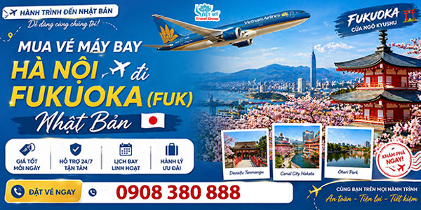 Bạn đang tìm Mua vé máy bay Hà Nội đi Fukuoka (FUK) Nhật Bản với mức giá tốt, lịch bay linh hoạt và nhiều ưu đãi? Hành trình từ Hà Nội đến thành phố Fukuoka – “cửa ngõ Kyushu” của Nhật Bản – đang ngày càng được nhiều du khách và người Việt sinh sống tại Nhật lựa chọn.
