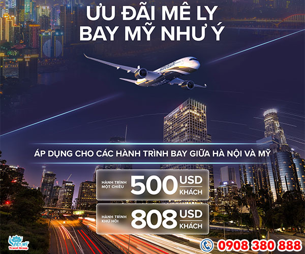 Cuối năm là thời điểm lý tưởng để lên kế hoạch cho chuyến du lịch hoặc thăm thân tại Mỹ. Nếu bạn đang tìm kiếm cơ hội săn vé máy bay đi Mỹ giá tốt, thì tin vui là STARLUX Airlines ưu đãi vé đi Mỹ cuối năm từ Hà Nội – mang đến hành trình sang trọng, tiện nghi và tiết kiệm hơn bao giờ hết! Nhanh tay săn ngay vé máy bay ưu đãi vé đi Mỹ cuối năm từ Hà Nội của STARLUX Airlines tại Đại lý vé máy bay Việt Mỹ!