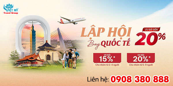 Hãng hàng không Sun PhuQuoc Airways ưu đãi nhóm Phú Quốc – Đài Bắc, giúp hành trình khám phá Đài Loan trở nên dễ dàng và tiết kiệm hơn bao giờ hết. Đây là lựa chọn lý tưởng cho gia đình, nhóm bạn hoặc đoàn du lịch muốn cùng nhau trải nghiệm thành phố hiện đại và sôi động của Đài Loan tại Đại lý vé máy bay Việt Mỹ!