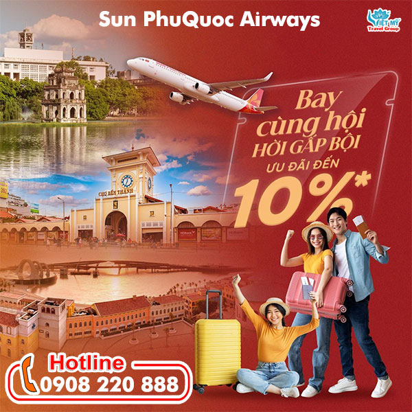 Tưng bừng săn vé máy bay Sun PhuQuoc Airways ưu đãi vé bay theo nhóm là lựa chọn lý tưởng cho gia đình, nhóm bạn, đoàn công ty hay khách du lịch theo tour đang tìm kiếm giải pháp di chuyển tiết kiệm và tiện lợi. Với chính sách giá tốt, hỗ trợ đặt chỗ linh hoạt và dịch vụ chu đáo, Sun PhuQuoc Airways giúp hành trình đông người trở nên dễ dàng hơn bao giờ hết tại Đại lý vé máy bay Việt Mỹ!