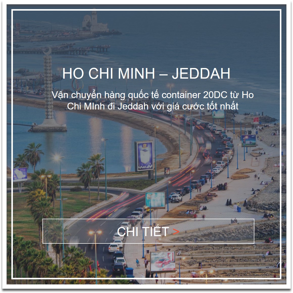 Đôi nét về thành phố Jeddah Thành phố Jeddah là thành phố lớn thứ hai của Ả Rập Saudi sau thủ đô Riyadh, nằm ở phía tây của đất nước, bên bờ biển Đỏ. Với dân số khoảng 4,5 triệu người, Jeddah là trung tâm thương mại, tài chính và du lịch của vương quốc Ả Rập Saudi. Jeddah là một trong những thành phố cổ nhất của thế giới, có lịch sử hơn 2.500 năm. Thành phố này từng là một trung tâm thương mại quan trọng trên tuyến đường thương mại giữa Ấn Độ và Địa Trung Hải. Vì vậy, Jeddah được biết đến là "cửa ngõ vào thành phố thánh Mecca", nơi mà hàng triệu người Hồi giáo từ khắp nơi trên thế giới đến thăm dự lễ hành hương hằng năm. Giá cước vận chuyển hàng hóa quốc tế từ Hồ Chí Minh đi Jeddah, Saudi Arabia Thời gian vận chuyển từ Hồ Chí Minh đi Jeddah, Saudi Arabia: 18-22 ngày Tàu chạy thứ 4, 5, 6, Chủ Nhật hàng tuần Giá cước vận chuyển hàng hóa Quốc tế từ Hải Phòng đi Jeddah, Saudi Arabia