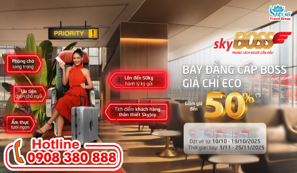 Vietjet Air ưu đãi ngày 10.10 vé hạng Thương gia Vietjet Air ưu đãi ngày 10.10 vé hạng Thương gia Vietjet Air ưu đãi ngày 10.10 vé hạng Thương gia Trong 10 ngày Mega Sale (10/10 – 19/10), hãy biến mỗi chuyến bay trở thành một lời nhắn nhủ yêu thương. Đặt vé Business cùng Vietjet, bạn trao cho bản thân và người thân sự ưu tiên, đẳng cấp và những khoảnh khắc “lên mây” đáng nhớ! Mức giảm: ận hưởng ưu đãi giảm tới 50% giá vé Business (chưa bao gồm thuế, phí). Thời gian bay: 1/11 – 25/11/2025 Hành trình bay áp dụng: -Việt Nam Hà Nội Tp. Hồ Chí Minh