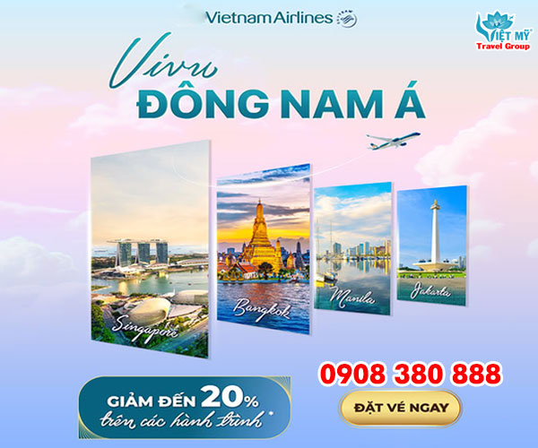 Bạn đang tìm kiếm vé máy bay đi Đông Nam Á với mức giá hợp lý, giờ bay đẹp và dịch vụ chất lượng? Tin vui dành cho bạn: Vietnam Airlines giảm 20% giá vé đi Đông Nam Á. Triển khai chương trình ưu đãi hấp dẫn cho các chặng bay đến những điểm đến nổi bật trong khu vực như Singapore, Manila, Bangkok và Jakarta. Đây là cơ hội lý tưởng để bạn lên kế hoạch du lịch, công tác hoặc khám phá Đông Nam Á với chi phí tiết kiệm nhất tại Đại lý vé máy bay Việt Mỹ!