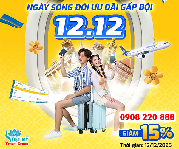 Ngày hội mua sắm cuối cùng của năm đang đến gần và Vietravel Airlines ưu đãi ngày song đôi 12.12 siêu hấp dẫn, áp dụng cho nhiều đường bay nội địa và quốc tế. Đây chính là thời điểm vàng để bạn lên kế hoạch vi vu cuối năm, du lịch Giáng sinh – năm mới hoặc thăm người thân trong dịp lễ tại Đại lý vé máy bay Việt Mỹ!