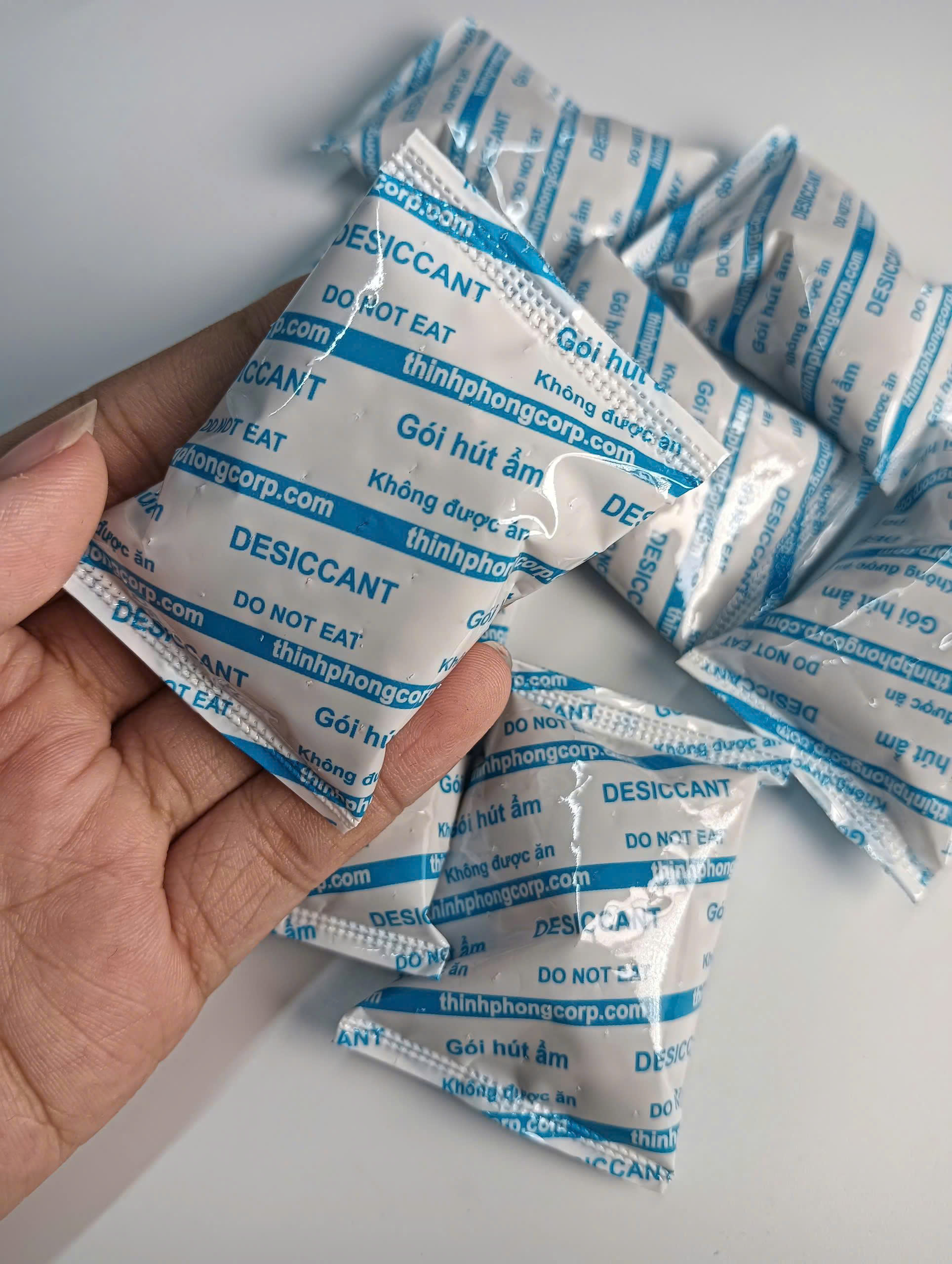 Đóng gói kín mà đồ ăn vặt vẫn mất độ giòn? dùng gói hút ẩm Thịnh Phong!