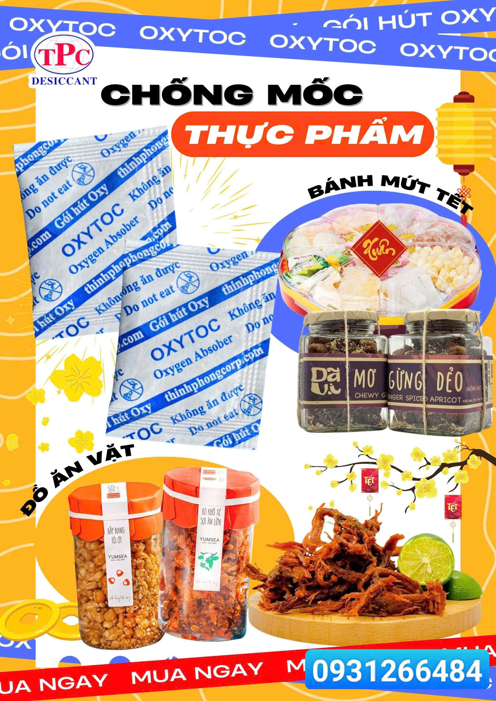 Trong mùa Tết, bánh mứt là nhóm thực phẩm dễ mốc – dễ xuống màu – nhanh hỏng do độ ẩm và oxy trong bao bì. Gói hút oxy (Oxygen Absorber) là giải pháp hiệu quả giúp kéo dài hạn sử dụng và giữ trọn hương vị sản phẩm.