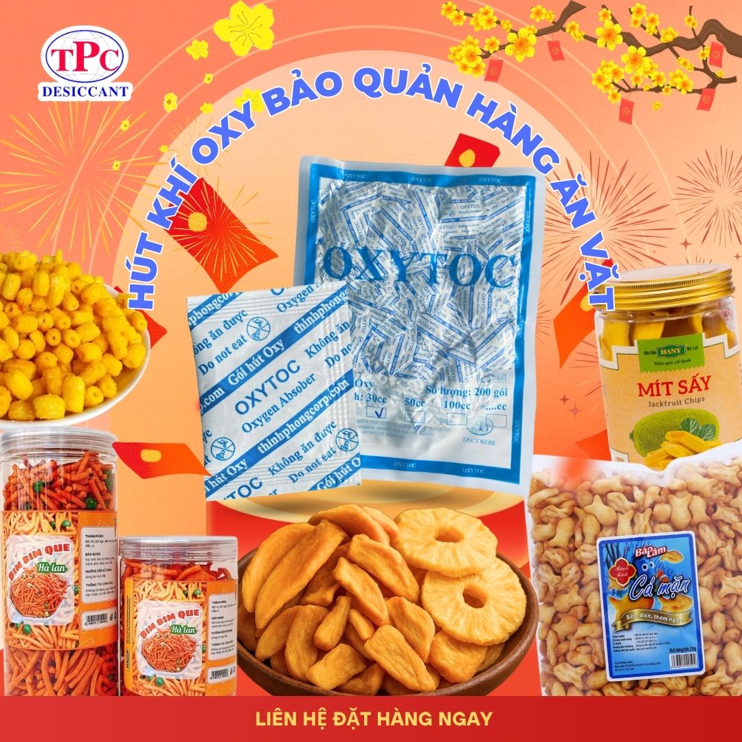 ✔ Giảm oxy ổn định trong môi trường kín ✔ Chống mốc, giữ màu sắc, hương vị sản phẩm ✔ Phù hợp nhiều loại bánh kẹo, mứt Tết
