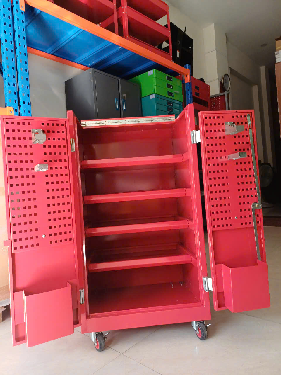 Tủ đựng đồ nghề được dùng để đồ nghề, dụng cụ cầm tay phổ biến trong các gara, cửa hàng siêu thị, các trung tâm bảo trì bảo dưỡng xe máy, ô tô, dùng nhiều trong nhà máy nhà xưởng để dụng cụ cầm tay