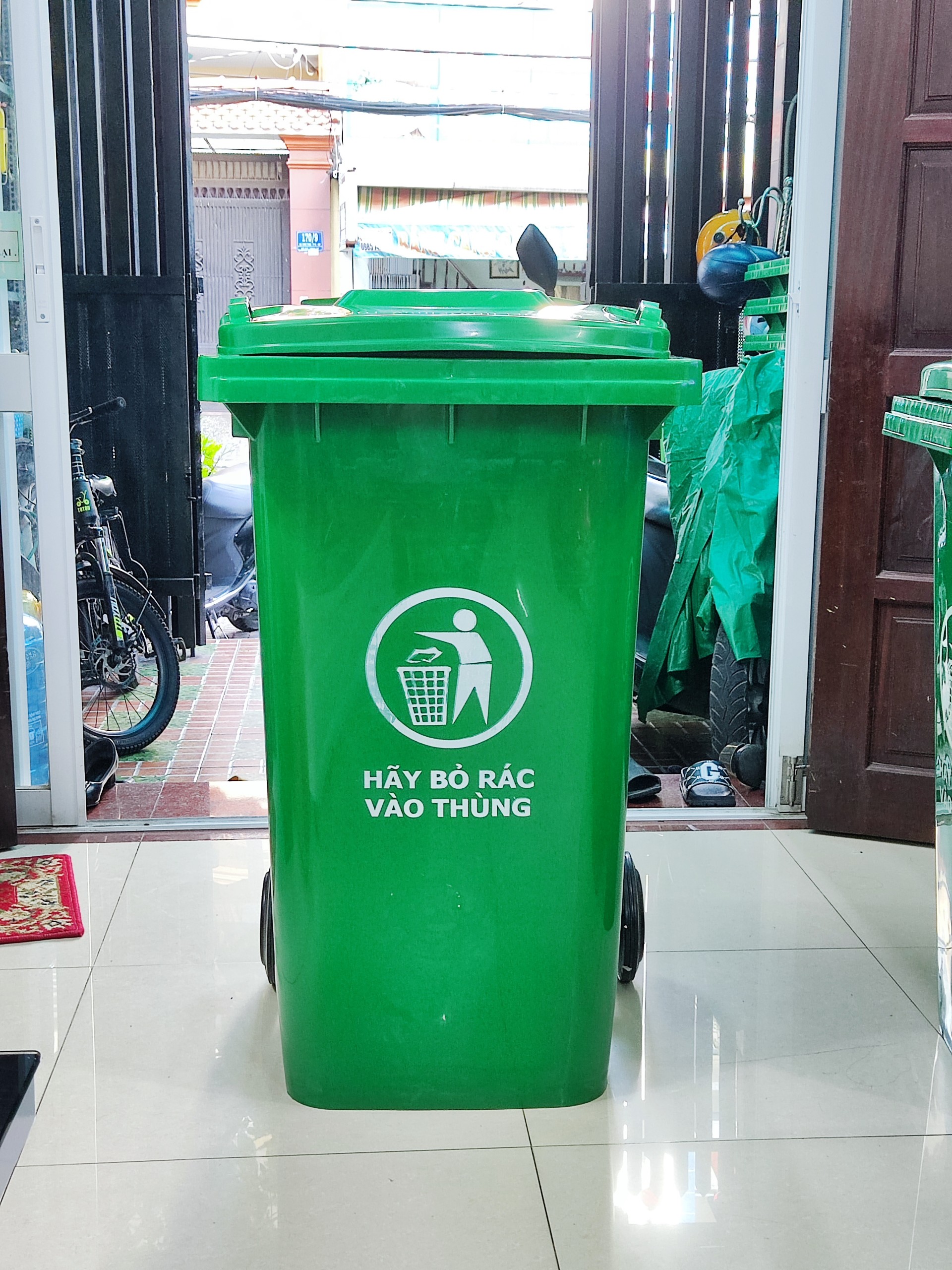 Thùng rác nhựa 240 lít chất liệu nhựa HDPE. Tiêu chuẩn Châu Âu EN 840. Nắp đậy kín ngăn mùi hiệu quả. Bánh xe xoay 360 độ thuận lợi di chuyển. Có khả năng xếp chồng tối ưu chi phí vận chuyển. Thùng rác 240 lít được sử dụng hầu hết trong các lĩnh vực: công cộng, bênh viện, trường học