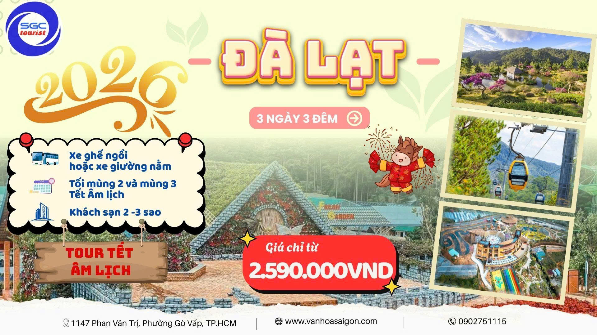 🌸 TẾT ÂM LỊCH 2026 – LÊN ĐÀ LẠT HÍT KHÍ TRỜI, MỞ HÀNG NĂM MỚI THẬT XINH! 🌸 ĐÀ LẠT 3N3Đ - Giá chỉ từ: 2.590.000đ/khách Mùa Tết, Đà Lạt se lạnh dễ chịu, hoa nở rực rỡ, cảnh nào lên hình cũng đẹp long lanh.