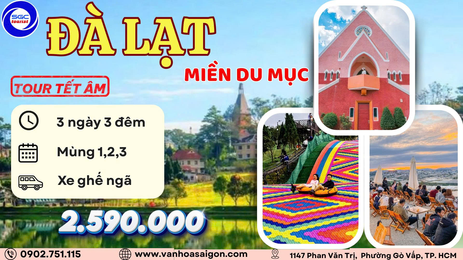 Tết này lên Đà Lạt để làm mới mình, mở hàng năm mới bằng một chuyến đi thật “đã”! 🌿💛 ☎️ 0902 751 115 🌐 www.vanhoasaigon.com 📍 1147 Phan Văn Trị, P. Gò Vấp, TP.HCM