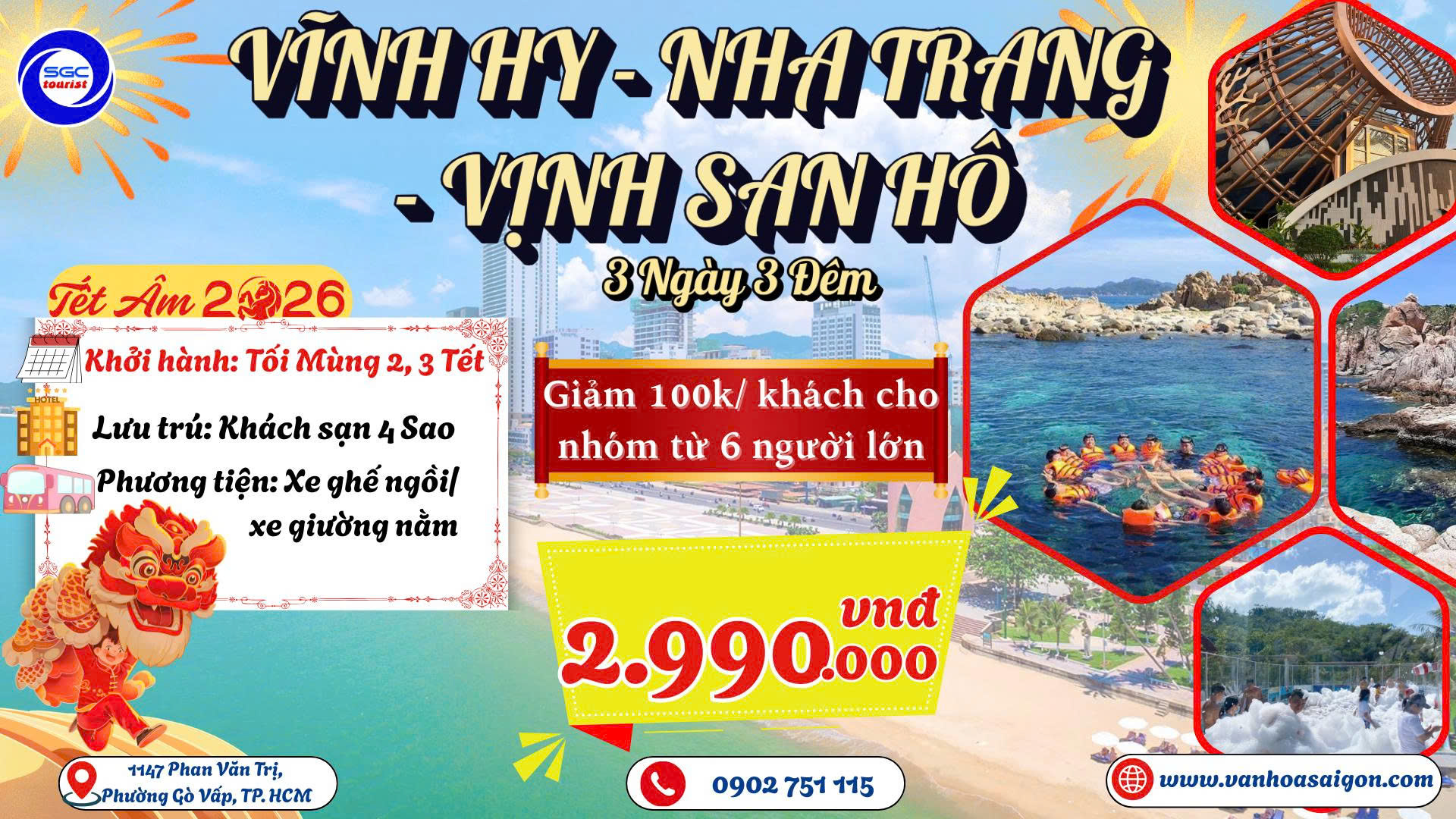 🌊BIỂN XANH VẪY GỌI – RẠNG NGỜI ĐÓN TẾT 2026 🌊 🧧VĨNH HY - NHA TRANG - VỊNH SAN HÔ 3 NGÀY 3 ĐÊM 💸Giá chỉ từ: 2.990.000 VNĐ/khách 📅Khởi hành: Tối Mùng 2 - 3 Tết Âm Lịch 🚐Phương tiện: Xe ghế ngồi/ Xe giường nằm 🏨Lưu trú: Khách sạn 4 sao