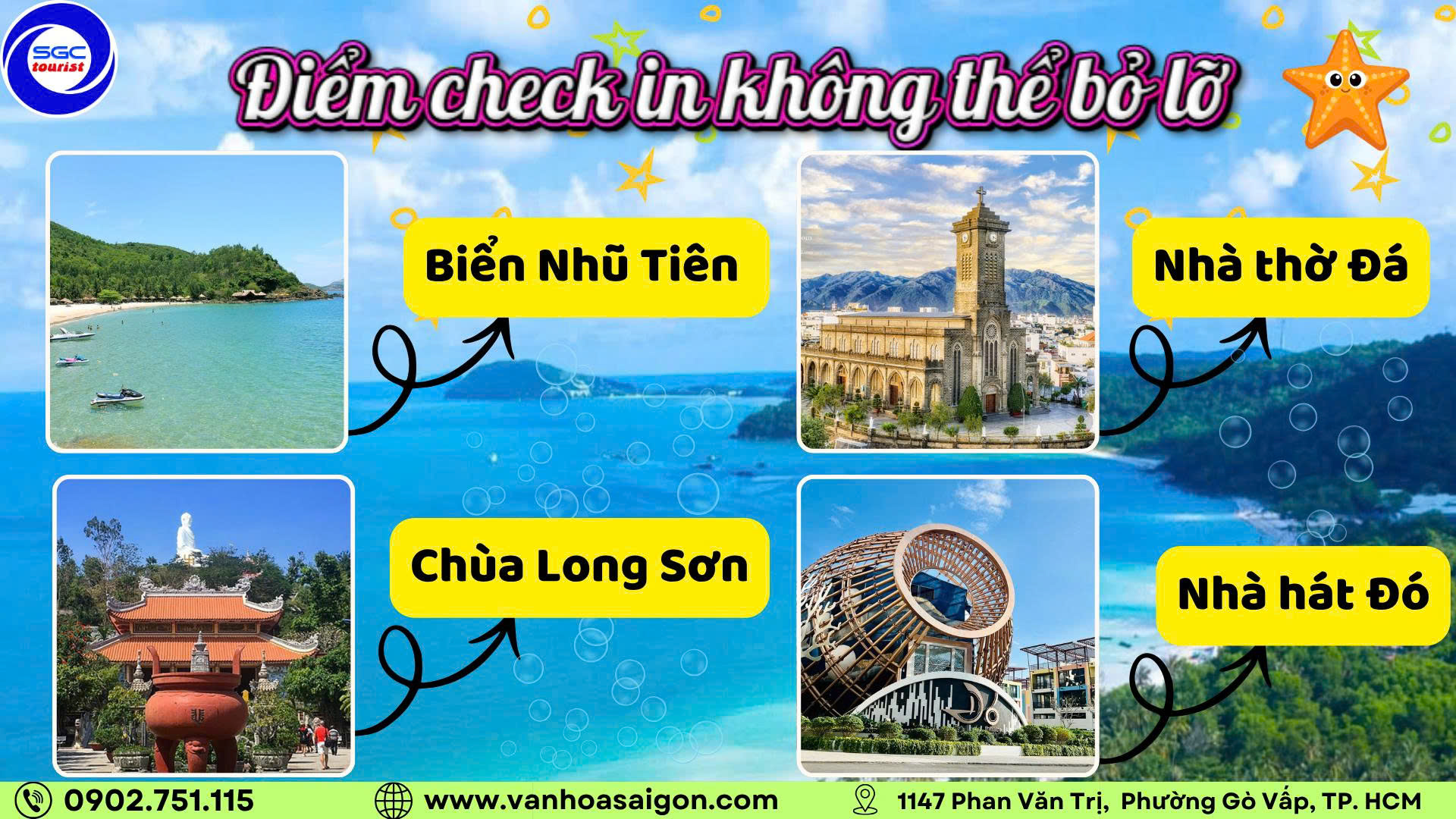 Năm mới đang tới gần, cùng SGC Tourist “xách balo” vi vu Nha Trang – vùng biển trong xanh, nắng vàng rực rỡ và loạt điểm đến cực chill: ✨ Vinwonder – Vinpear Harbour: Thiên đường vui chơi giải trí tầm cỡ quốc tế 🐚 Vịnh San Hô: Lặn ngắm san hô rực rỡ giữa lòng đại dương 🏝️ Biển Nhũ Tiên: Góc biển yên bình, xanh biếc như ngọc ⛪ Nhà thờ Đá, Chùa Long Sơn, Nhà hát Đó: Điểm check-in nổi tiếng không thể bỏ lỡ!