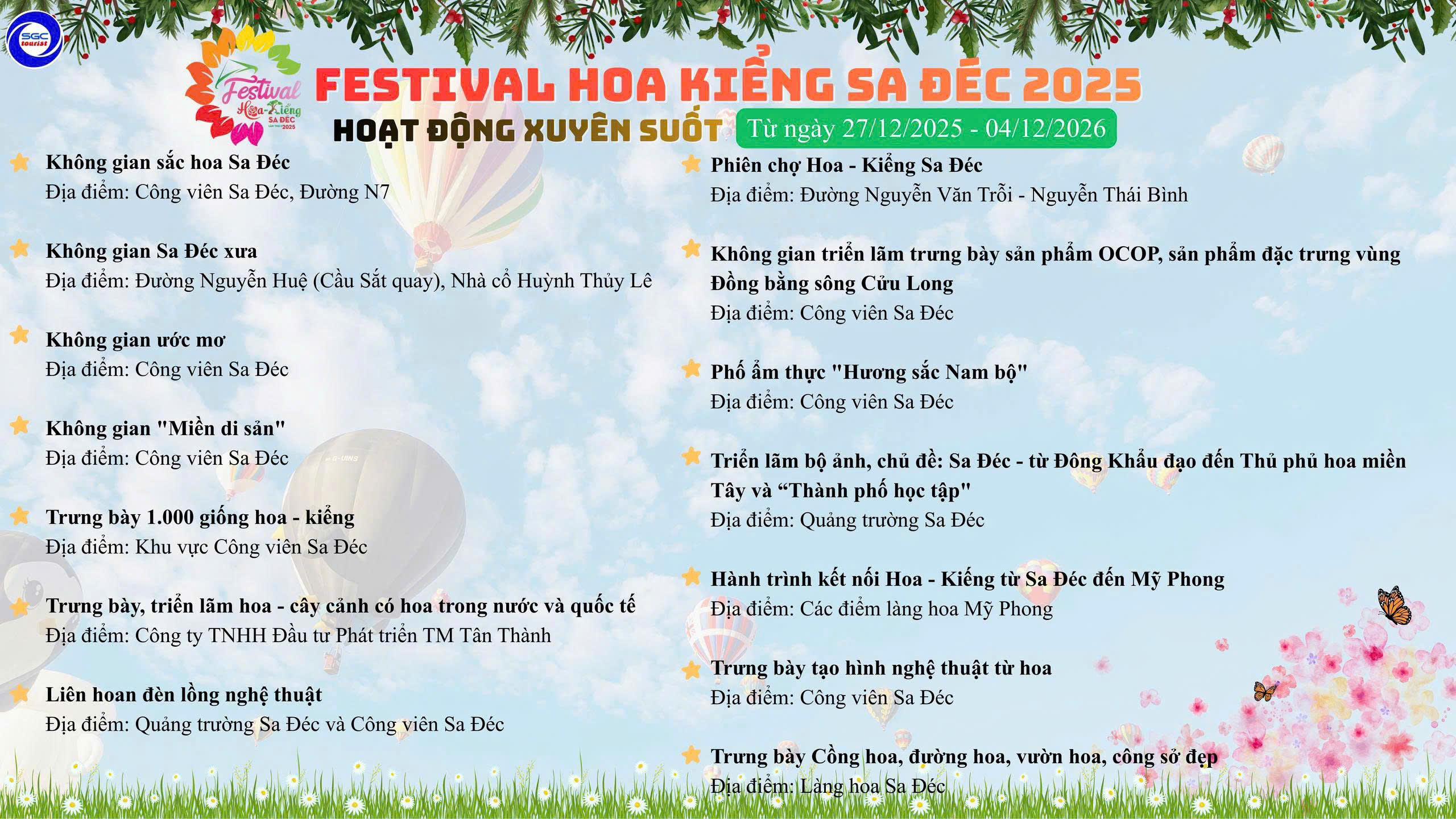 🌟 ĐIỂM NHẤN NỔI BẬT CỦA TOUR 1. Tham quan – Check in Làng Hoa Sa Đéc 2. Trải nghiệm FESTIVAL HOA KIỂNG SA ĐÉC 2025 3. Tham quan những điểm hấp dẫn khác 📍 KDL Vườn Hồng Tư Tôn – thiên đường hoa hồng đủ loại 📍 Vườn quýt hồng – hái quýt check-in siêu đẹp 📍 Chùa Phật Ngọc Xá Lợi – điểm tâm linh nổi bật của Đồng Tháp